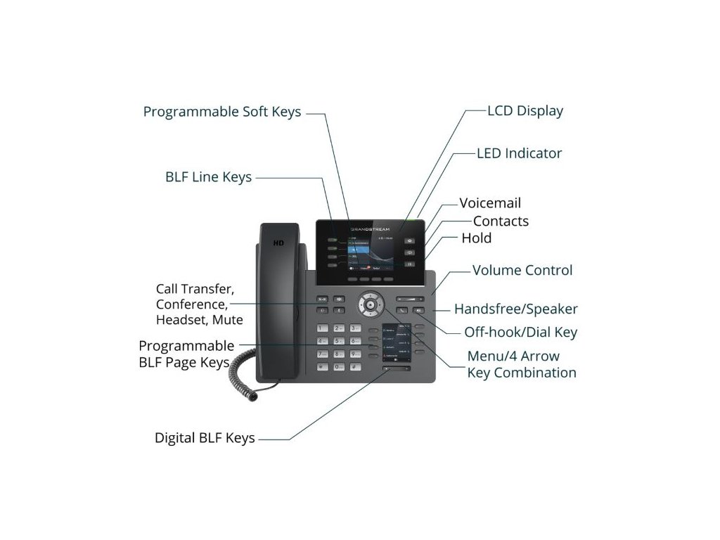 Série GRP2600 byla vyvinuta především pro zákazníky, kde je třeba používat zařízení ve velkém počtu. Jedná se o řadu, která usnadňuje hromadné nasazení, disponuje elegantním designem a sadou funkcí příští generace, včetně podpory WiFi, se 40 softwarovými BLF tlačítky, barevným LCD displejem s vyměnitelnými čelními deskami pro snadné přizpůsobení loga firmy a další. - 4 SIP účty - 4 soft programovatelná tlačítka - 4 BLF tlačítka pro indikaci linek - 40 BLF softwarových programovatelných tlačítek - podpora Bluetooth - podpora WiFi, dual-band 802.11 a/b/g/n/ac WiFi - Dual port auto-sensing 10/100/1000 Mbps Gigabit - odnímatelná čelní deska pro přizpůsobení vlastního loga - kvalita zvuku v HD, podpora G722 a Opus kodeku - zabezepeční na Enterprise úrovni, secure boot, dual firmware images, šifrování datDodatočné parametre