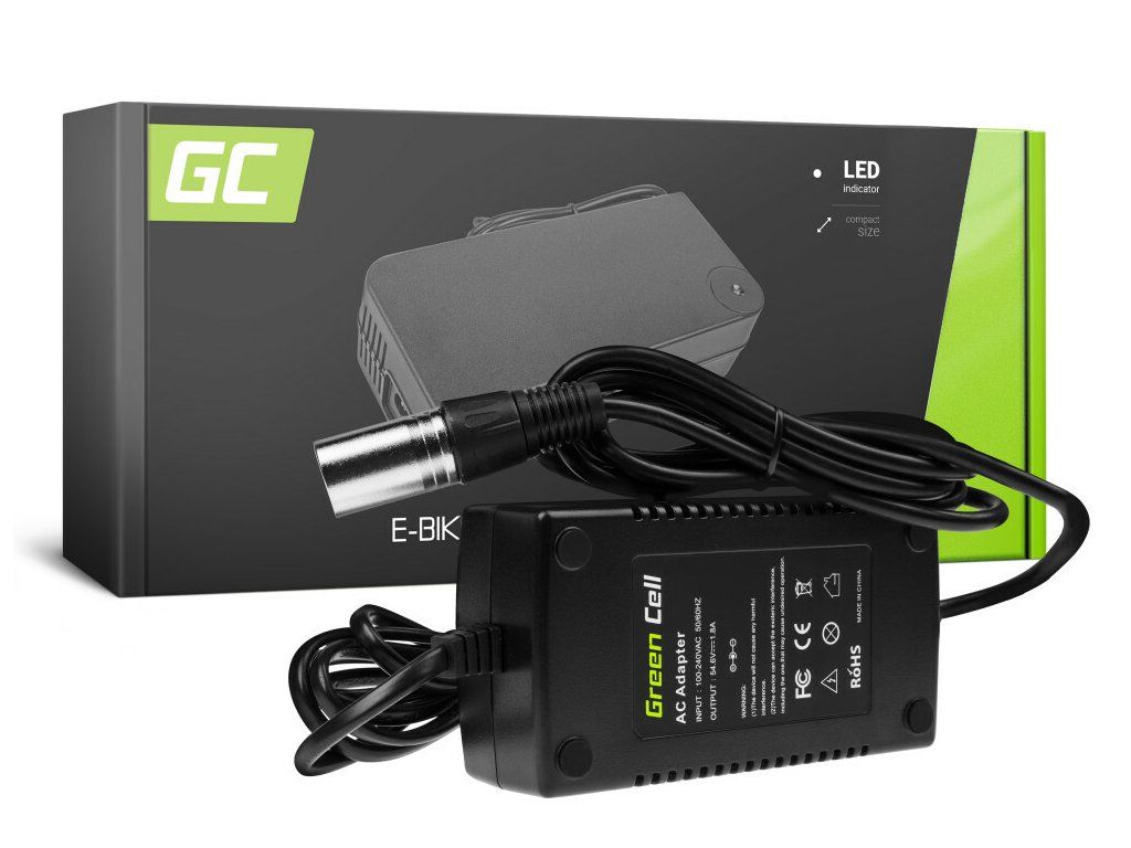 Nabíjačka na elektrické bicykle Green Cell ACEBIKE04 Charger 54,6V 1.8A (Cannon) for EBike 48V je navrhnutá pre bicykle s 48V batériou.