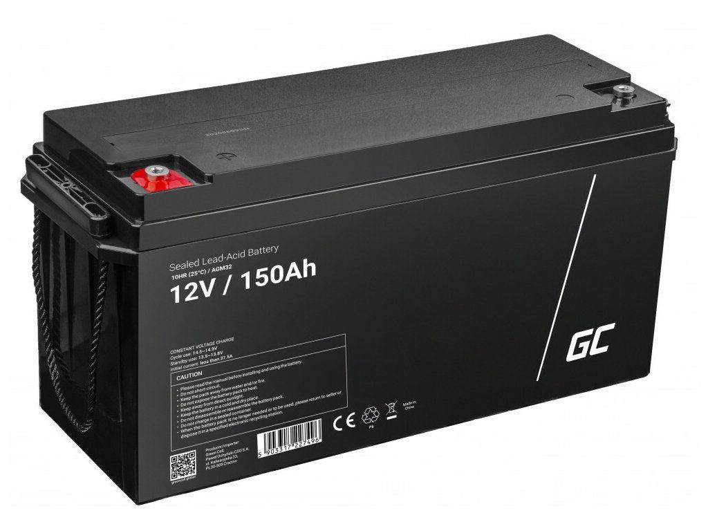 Batéria/akumulátor Green Cell AGM32 AGM VRLA Battery 12V 150Ah s dlhou životnosťou a s kapacitou 12V je vyrobená z kvalitných materiálov, založená na technológií AGM t.j. konštrukcia obsahujúca separátor zo sklenej vaty, ktorý absorbuje elektrolyt.