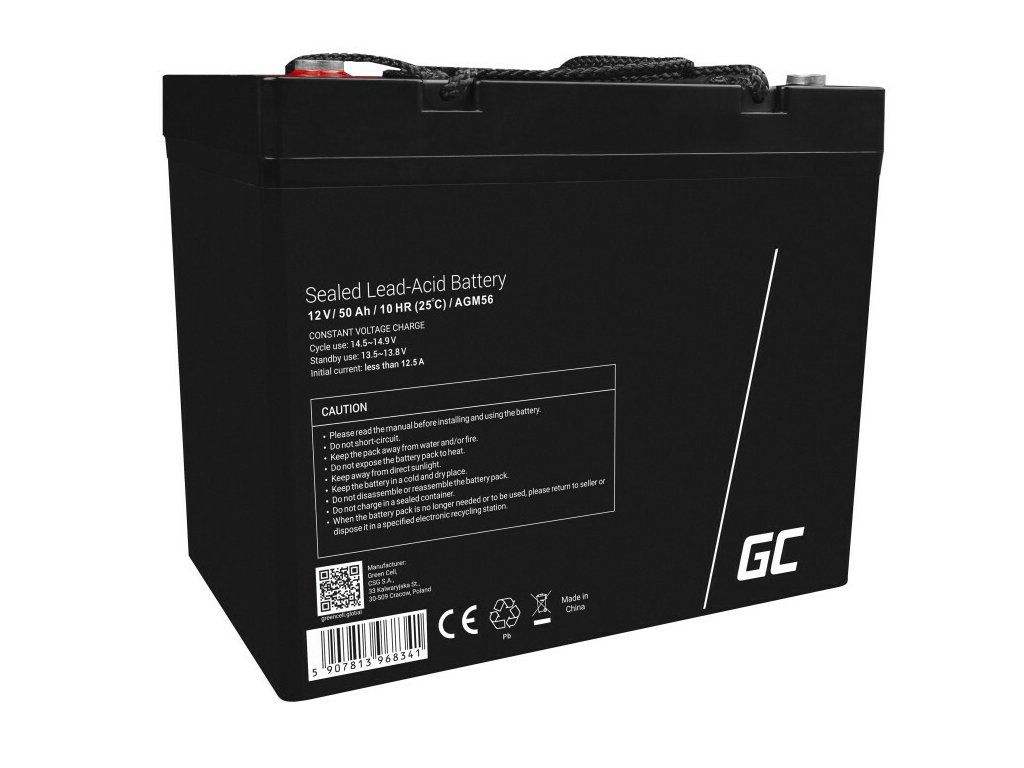 Bezúdržbová olovená batéria Green Cell AGM56 VRLA 12V 50Ah vhodná pre člny, skútre, invalidné vozíky, obytné prívesy, kosačky na trávu a pod.