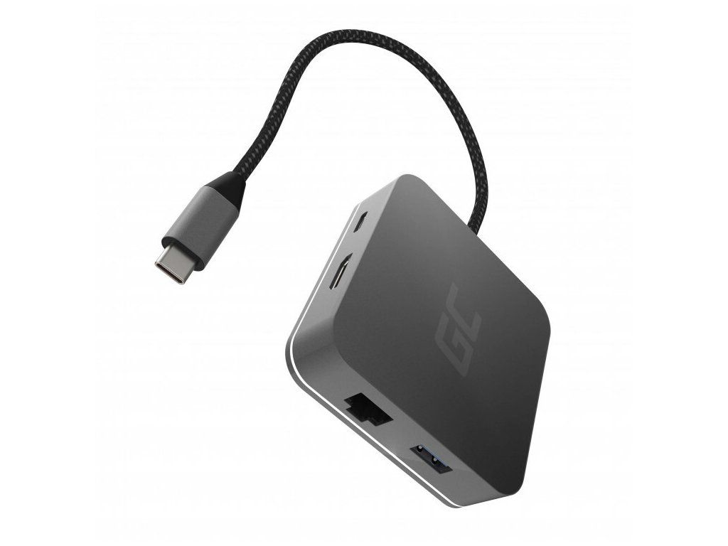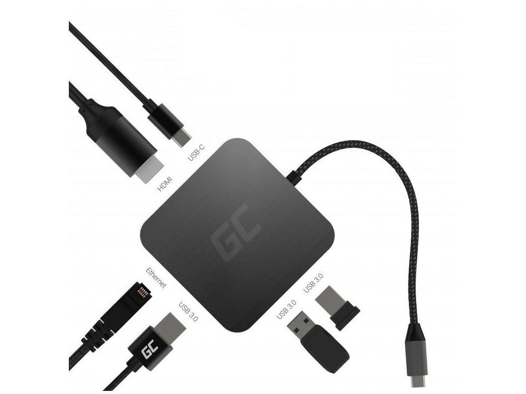 Dokovacia stanica/adaptér HUB Green Cell AK61 HUB USB-C 6in1 na rozšírenie jedného USB-C na 6 vstupov (HDMI, Ethernet, 3x USB 3.0, USB-C)