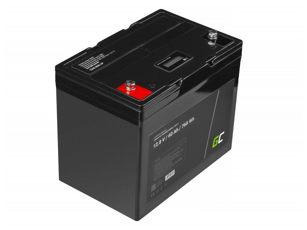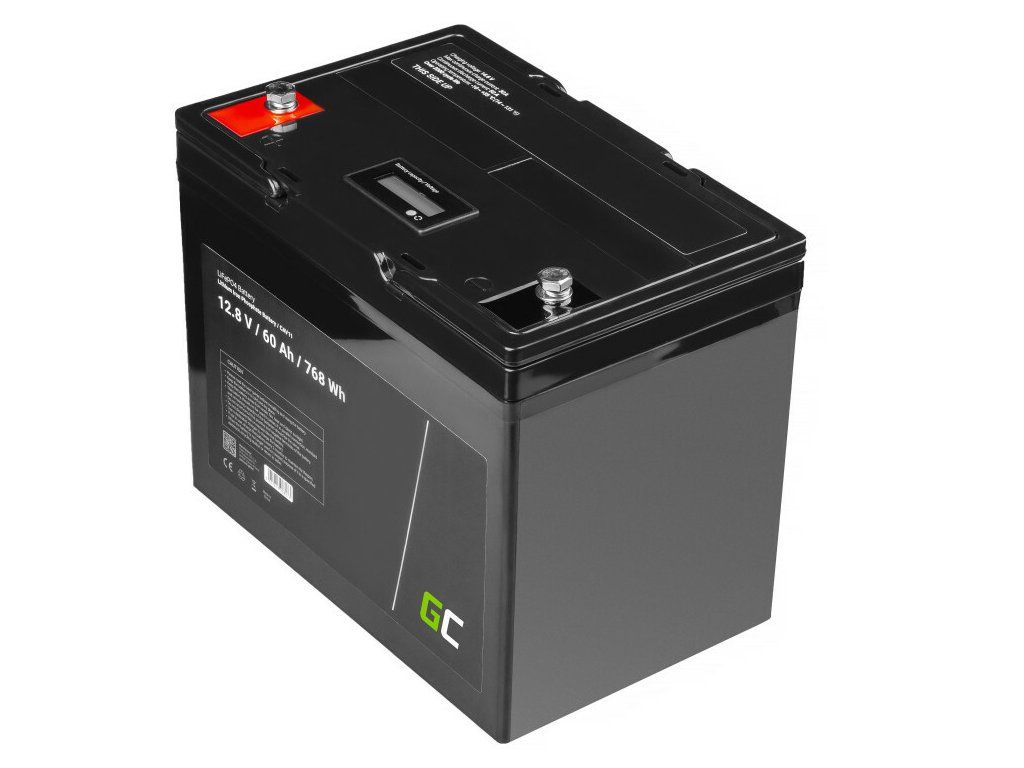 Lítium-železo-fosfátová batéria Green Cell CAV11 LiFePO4 Battery 12V 12.8V 60Ah vhodná pre fotovoltaický systém, obytné automobily a člny. Vyznačuje sa vynikajúcou odolnosťou, aktuálnym výkonom a rýchlosťou nabíjania. Má tiež dlhšiu životnosť a je ľahšou alternatívou k oloveným akumulátorom.