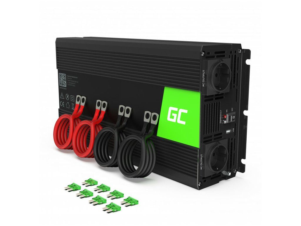 Automobilový menič/invertor Green Cell INV10 Voltage Car Inverter 12V to 220V, 2000W/4000W je zariadenie, ktoré mení jednosmerné napätie z automobilového akumulátora alebo automobilového zväzu na striedavý prúd ~ 230V. Presne rovnaký signál je v každej elektrickej zástrčke (typ F) v Európe.