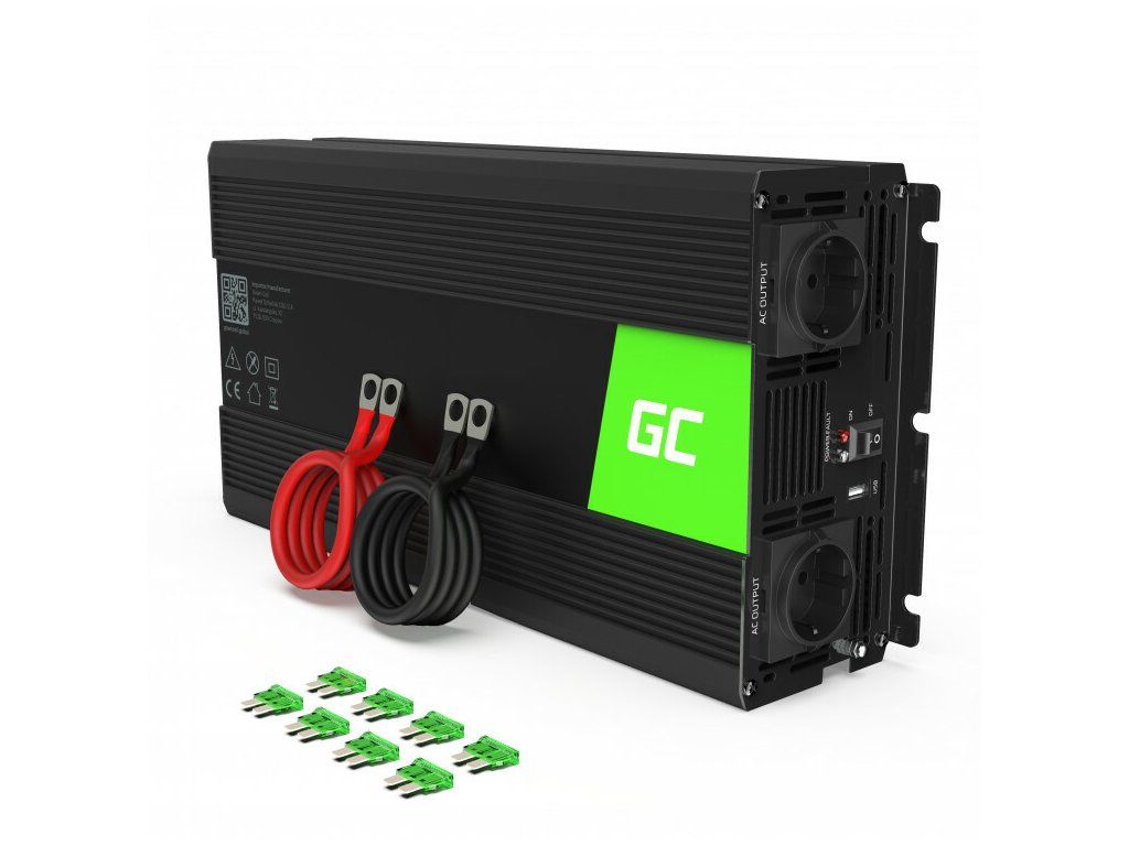 Automobilový menič/invertor napätia Green Cell INV25 Inverter 12V to 230V, 1500W je zariadenie, ktoré mení jednosmerné napätie z automobilového akumulátora alebo automobilového zväzu na striedavý prúd ~ 230V. Presne rovnaký signál je v každej elektrickej zástrčke (typ F) v Európe.