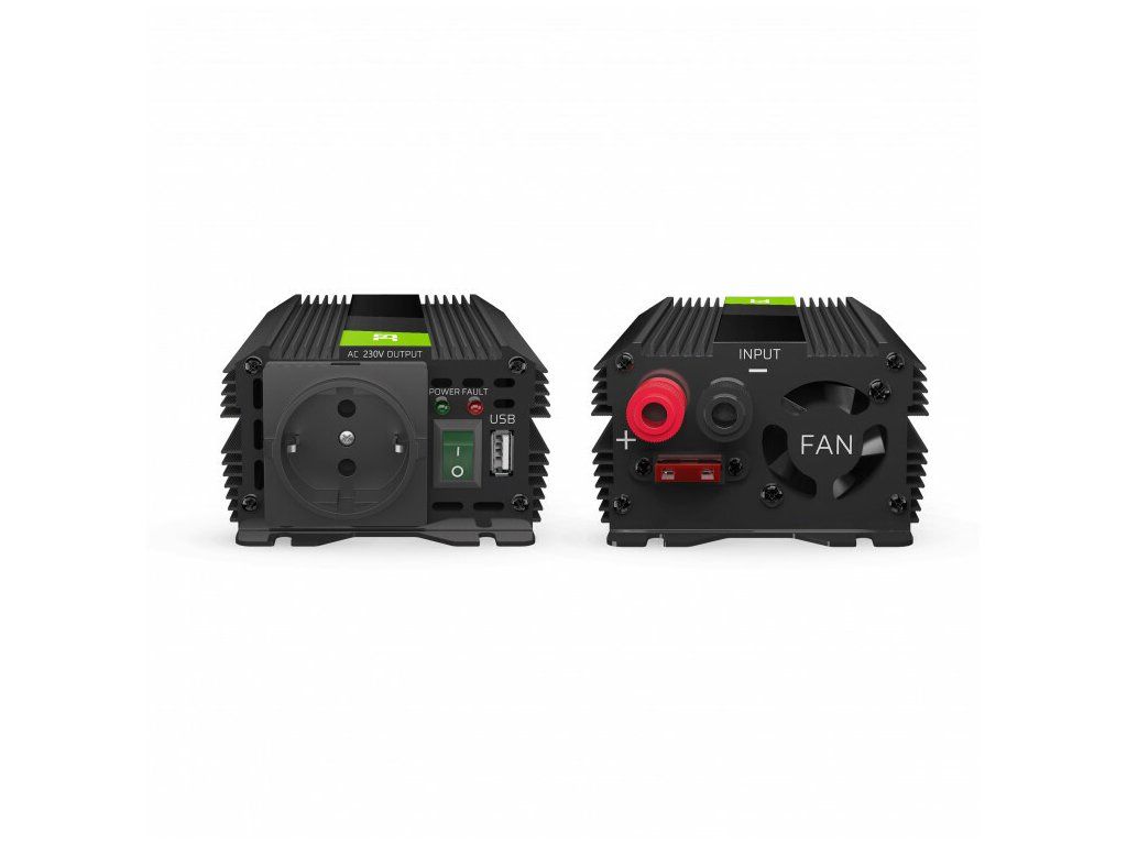 Automobilový menič/invertor napätia Green Cell INVGC01 Car Power Inverter PRO 12V to 230V, 300W/600W with USB je zariadenie, ktoré mení jednosmerný prúd 12V DC z automobilového akumulátora alebo automobilového zväzu na striedavý prúd ~ 230V.