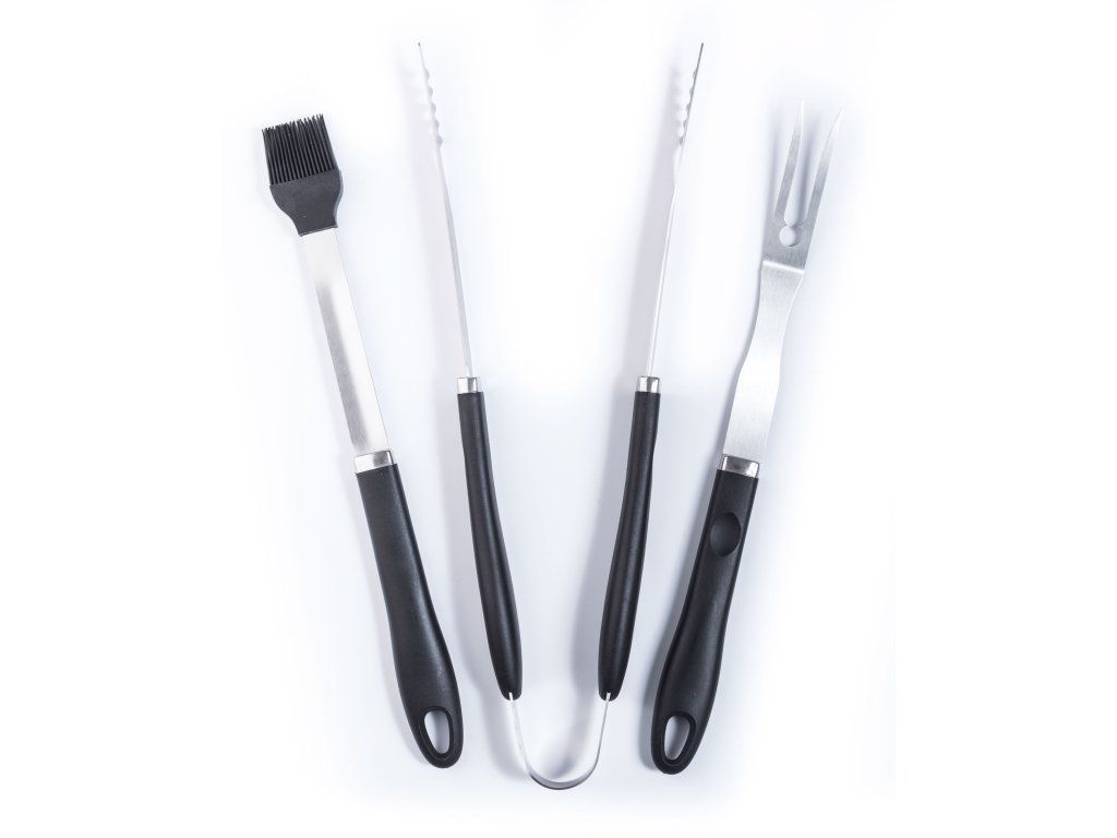 Praktické umývateľné rukoväte z odolného plastu sú prispôsobené pre pohodlné držanie a vďaka očku na zavesenie ich môžete odkladať na grilovacie háčiky G21. Grilovacie kliešte (45 cm) a grilovacia vidlička (41 cm) sú z nerezu, štetec na marinovanie (41 cm) je zo žiaruvzdorného silikónu.