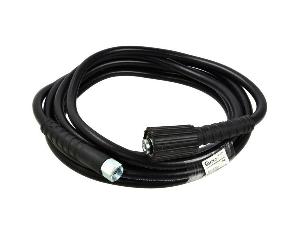Hadice vysokotlakého čističe namontovaná na 22 mm závitu. Díky použití typických závitů (14 mm ze strany pistole a 22 mm ze strany čističe) se hadice hodí prakticky ke všem podložkám a tlakovým pistolím.