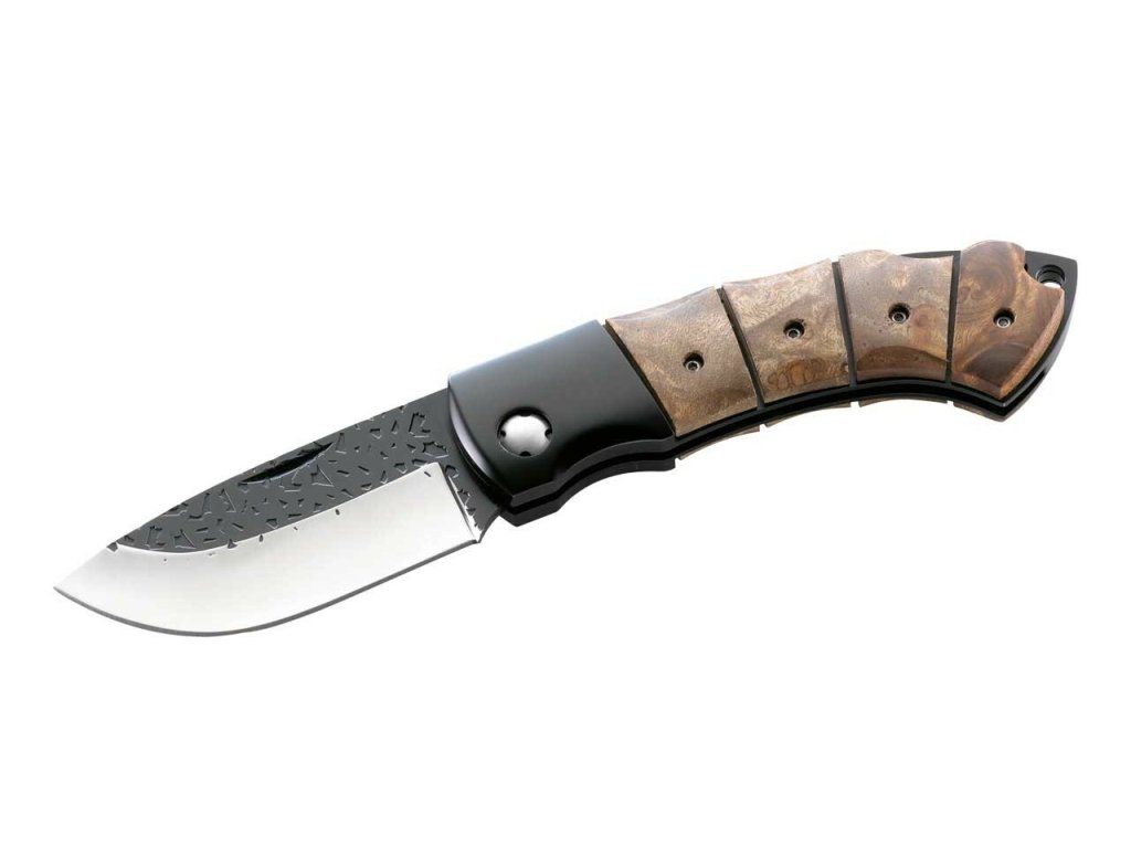 Všestranný zatvárací nôž Herbertz 202512 s masívnym dizajnom, má čepeľ s hladkou hranou z nehrdzavejúcej ocele AISI 420 s kováčskym dizajnom a dvojfarebným povrchom, otvára sa manuálne a zaisťuje ju zadný zámok Backlock.
