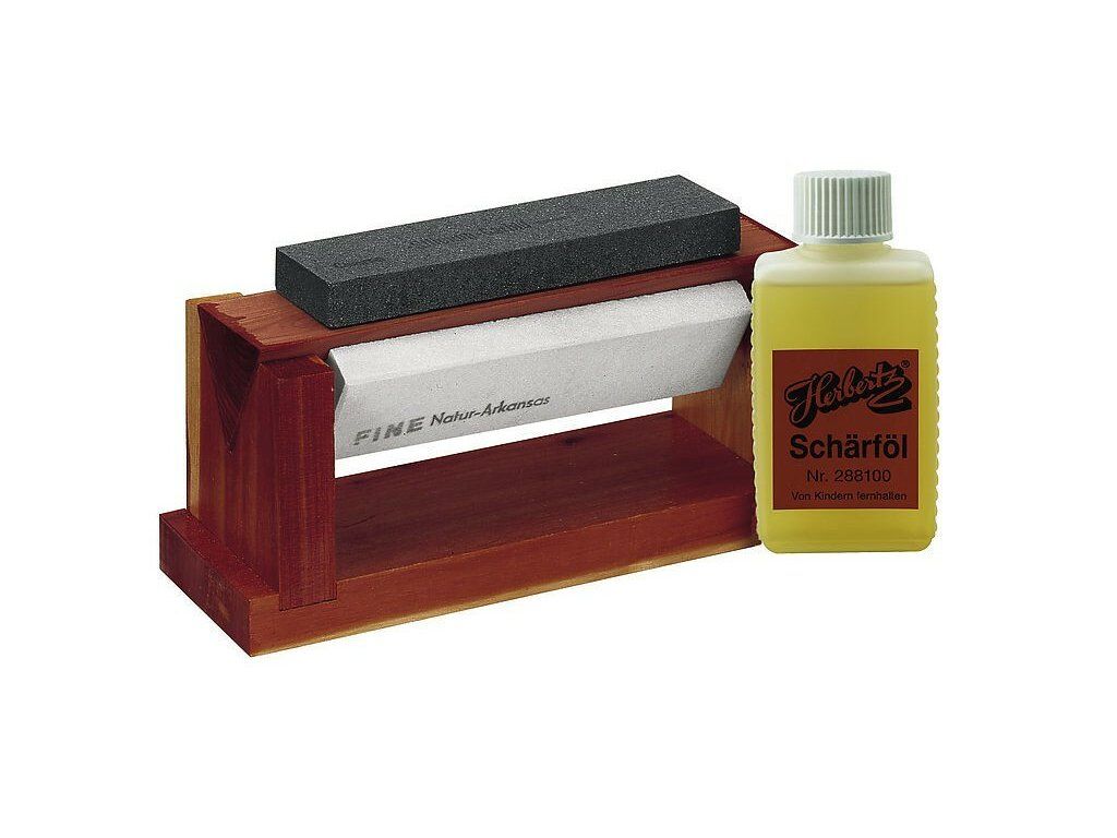 Herbertz 288415 súprava 3 brúsnych kameňov, drevený stojan, olej