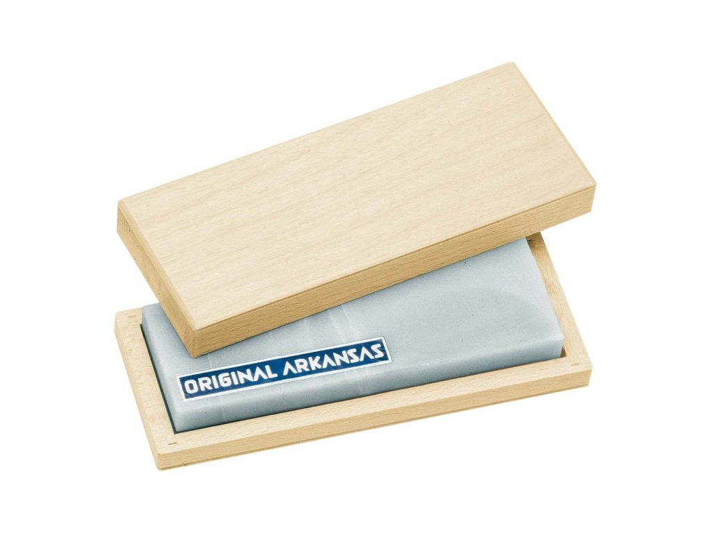 Originálny brúsny kameň Herbertz Arkansas sa používa s olejom a slúži na dokončovacie brúsenie. Kameň je v drevenej krabici. Zrnitosť porovnateľná s J8000.