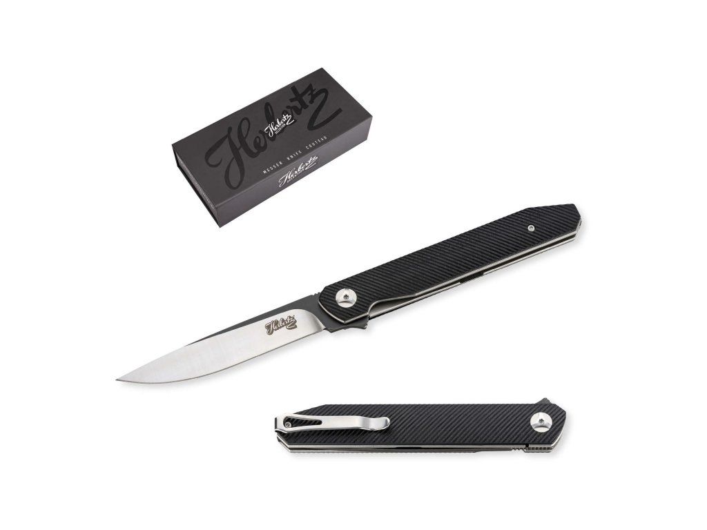 So štíhlou, elegantnou rukoväťou z čierneho nekĺzavého G10 s oceľovými vložkami, so sponou na vrecká.
