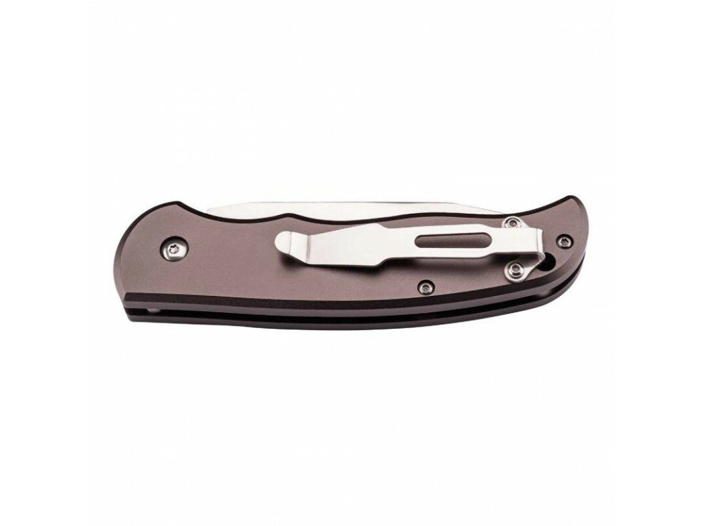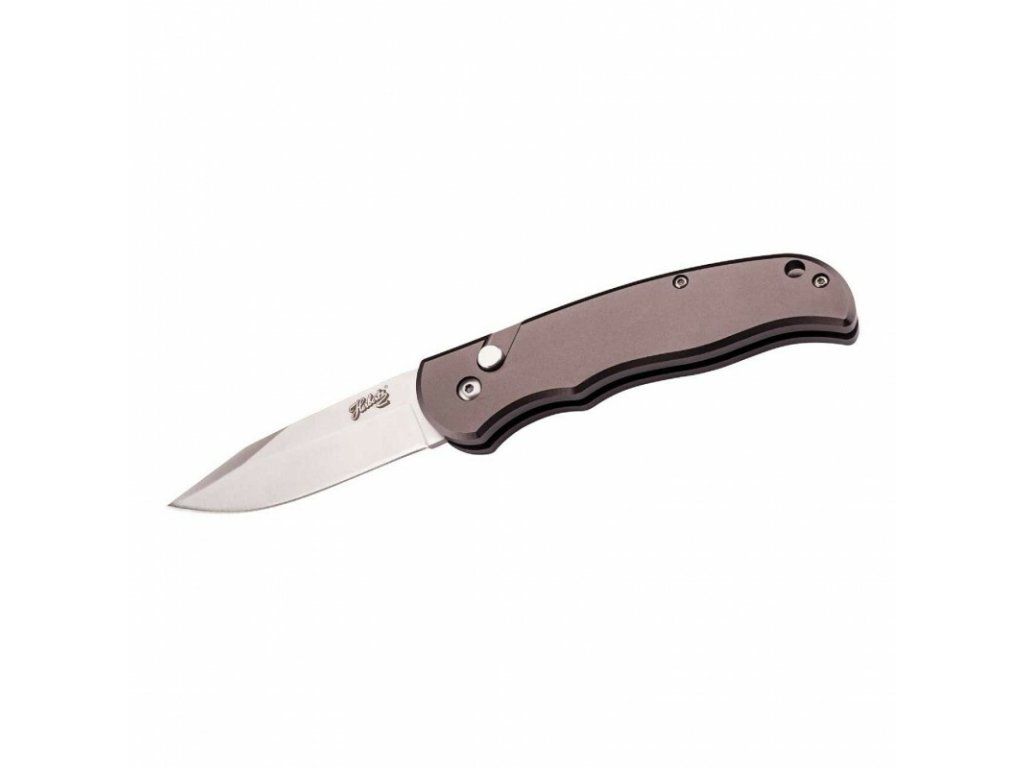 Čepeľ s hladkou hranou je vyrobená z nehrdzavejúcej ocele AISI 440, s bezpečnostným gombíkovým zámkom Button Lock.