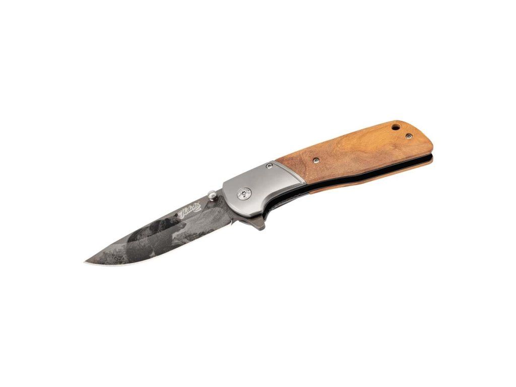Jednoručný vreckový zatvárací nôž Herbertz 55010 Olivenholz na prvý pohľad zaujme realistickým vyobrazením medveďa v horskej krajine na čepeli . Je vhodný ako darček pre lovcov či poľovníkov, či milovníkov prírody.