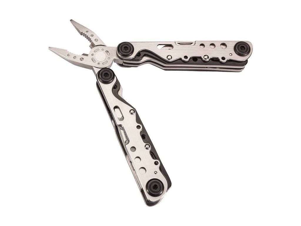 Multifunkčný nástroj Herbertz 571300 je robustný, univerzálny a ľahko použiteľný. Okrem pružinových klieští ponúka 8 ďalších nástrojov, vrátane noža, pilníka na nechty, pílky, otvárača na fľaše a rôznych skrutkovačov. Rukoväť vyrobená z brúsenej nehrdzavejúcej ocele dodáva nástroju dekoratívny dizajn.