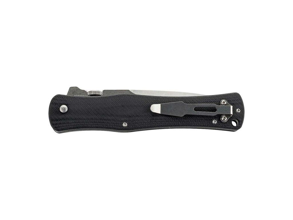 Rukoväť je z odolného G10 čiernej farby, so sponou na vrecká (umiestnenie vľavo i vpravo).