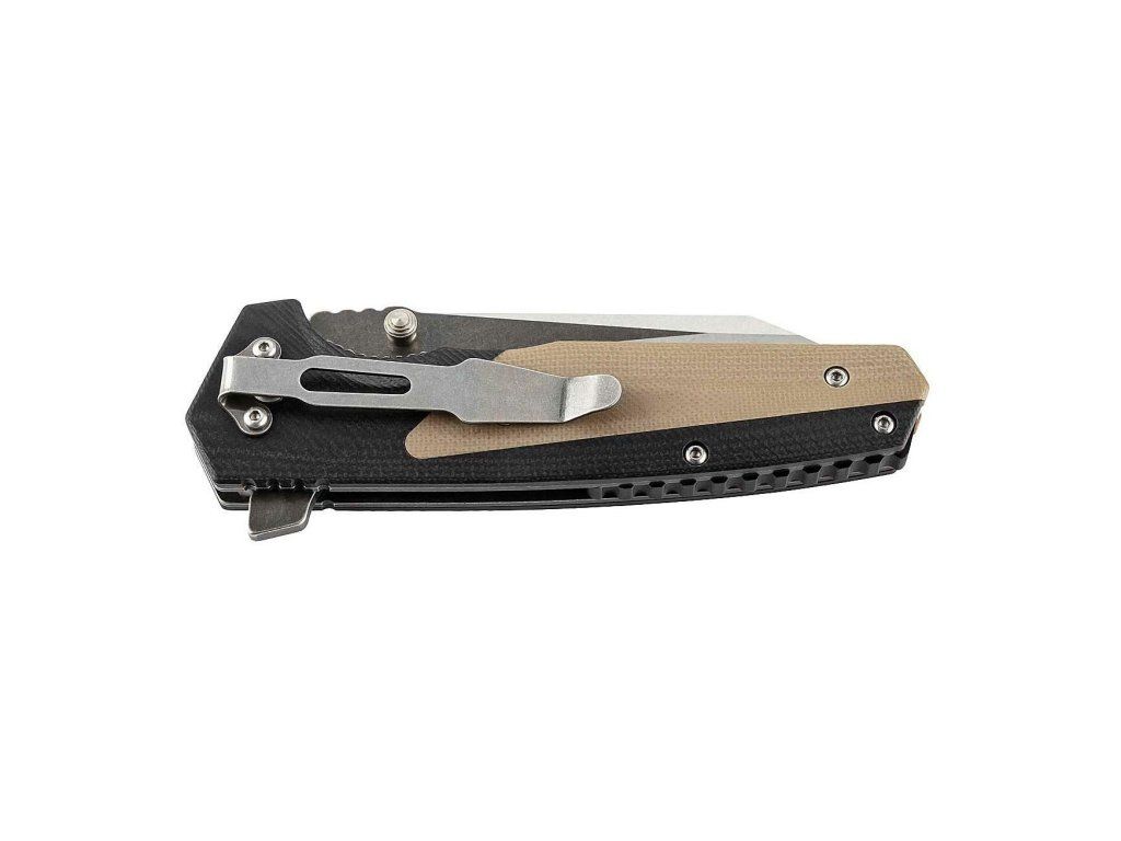 Má čepeľ z nerezovej ocele AISI 440 s dvojfarebnou povrchovou úpravou, vďaka osi čepele s guľôčkovým ložiskom možno nôž jednoducho polohovať pomocou vyklápača Flipper alebo obojstranných palcových kolíkov. Zaisťuje ju Linerlock.
