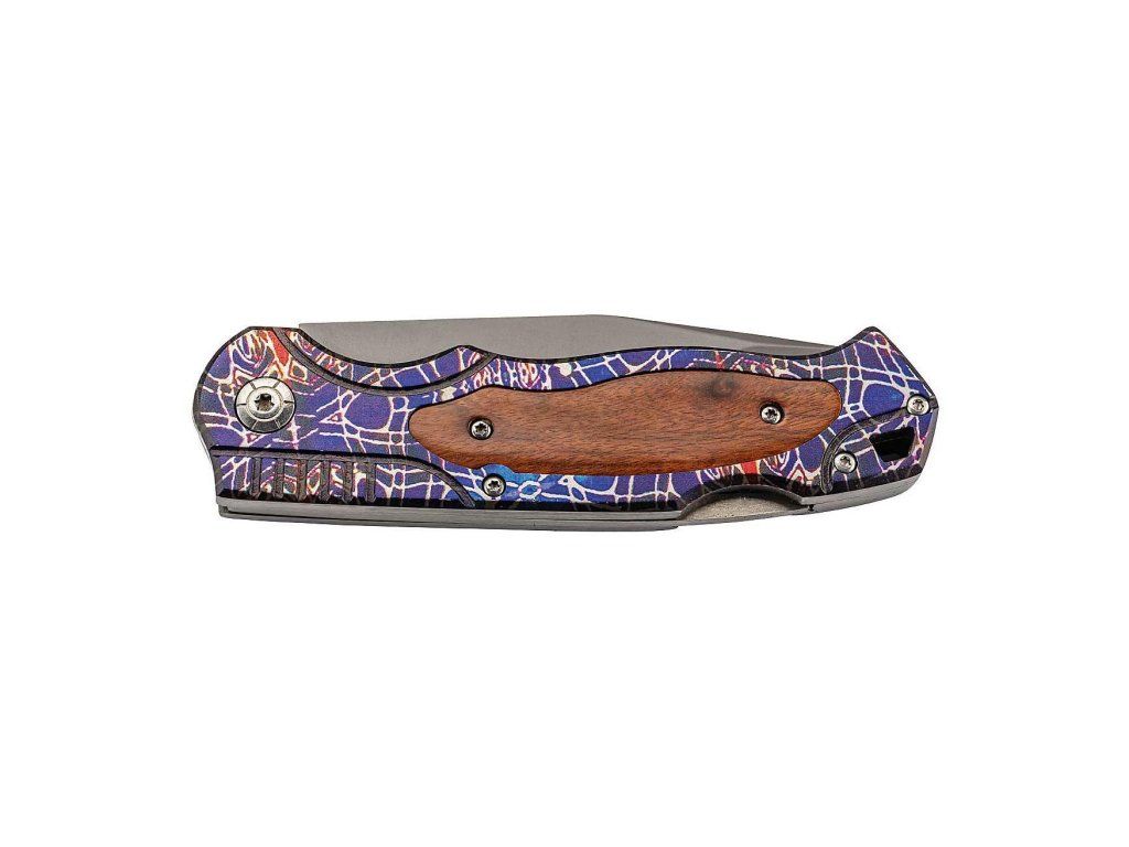 Rukoväť je z nehrdzavejúcej ocele s 3D farebným motívom má na oboch stranách vložky z dreva cocobolo. S dierkou na šnúrku.