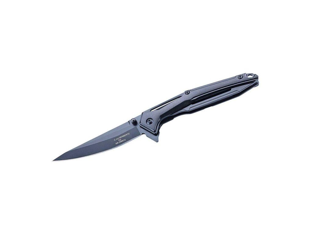 Herbertz 596612 jednoručný vreckový nôž 9,6cm D2, CNC frézovaný hliník, čierna