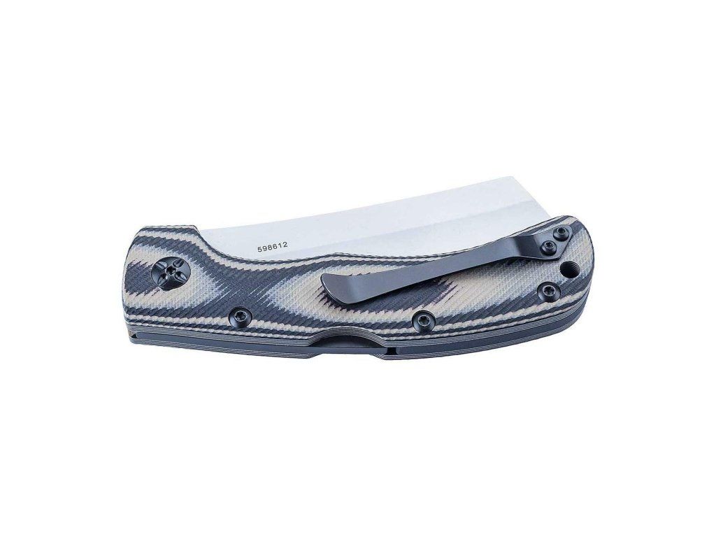 Má čepeľ typu Cleaver z nehrdzavejúcej ocele AISI 420, otvára sa zárezom na čepeli a zaisťuje ju zadný zámok Backlock.