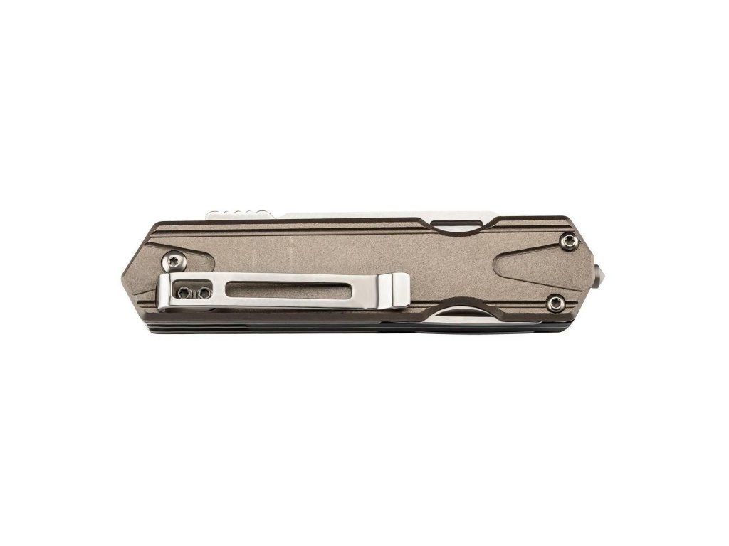 Má čepeľ s hladkou hranou, pílku a ostatné nástroje z nehrdzavejúcej ocele AISI 440C, otvára sa palcovými kolíkmi a zaisťuje ju Linerlock.