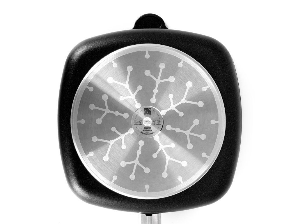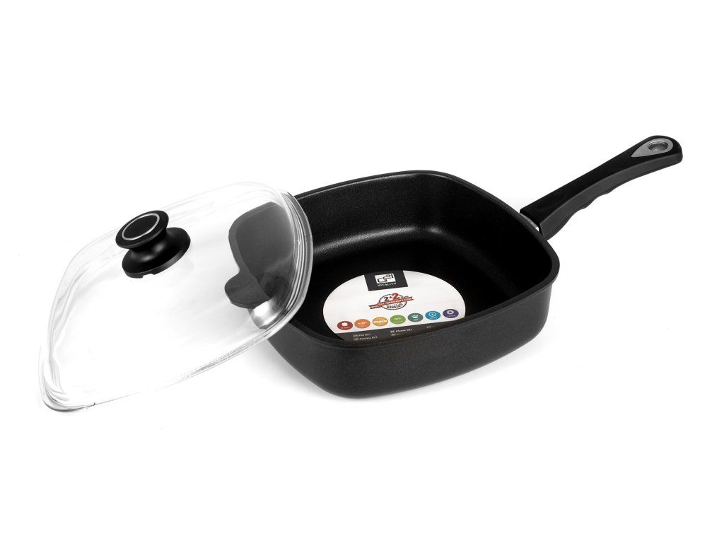 Prezrite si štvorcovú, 8 cm vysokú panvicu, ktorá spĺňa všetky uvedené požiadavky na dokonalú panvicu. Je univerzálna pre všetky typy ohrevov, teplo vedie dokonale rovnomerne, jedlo sa na nej vďaka špeciálnej nepriľnavej vrstve LOTAN® nepripaľuje a vyprážať či zapekať môžete bez použitia oleja.