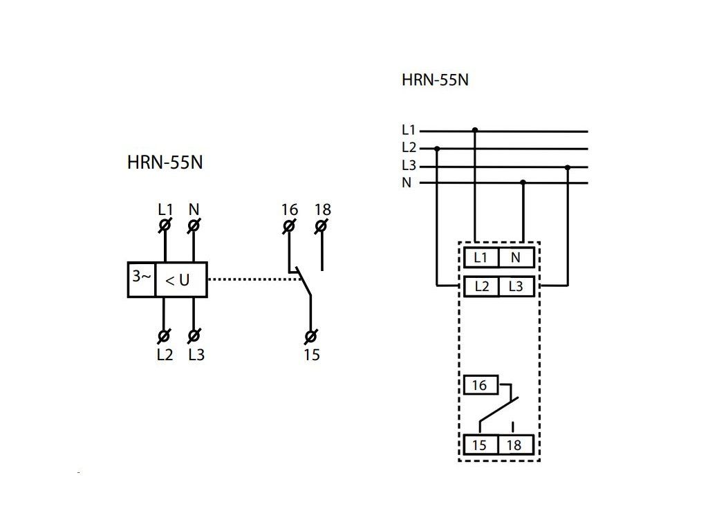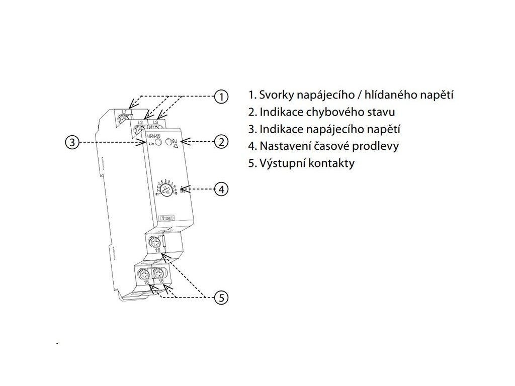 1. Jaký je hlavní rozdíl mezi modely HRN-55 a HRN-55N? Zatímco základní model se napájí ze všech fází, verze HRN-55N využívá k napájení svorky L1, L2, L3-N. To v praxi znamená, že tento model dokáže efektivně hlídat i nebezpečné přerušení nulového vodiče.