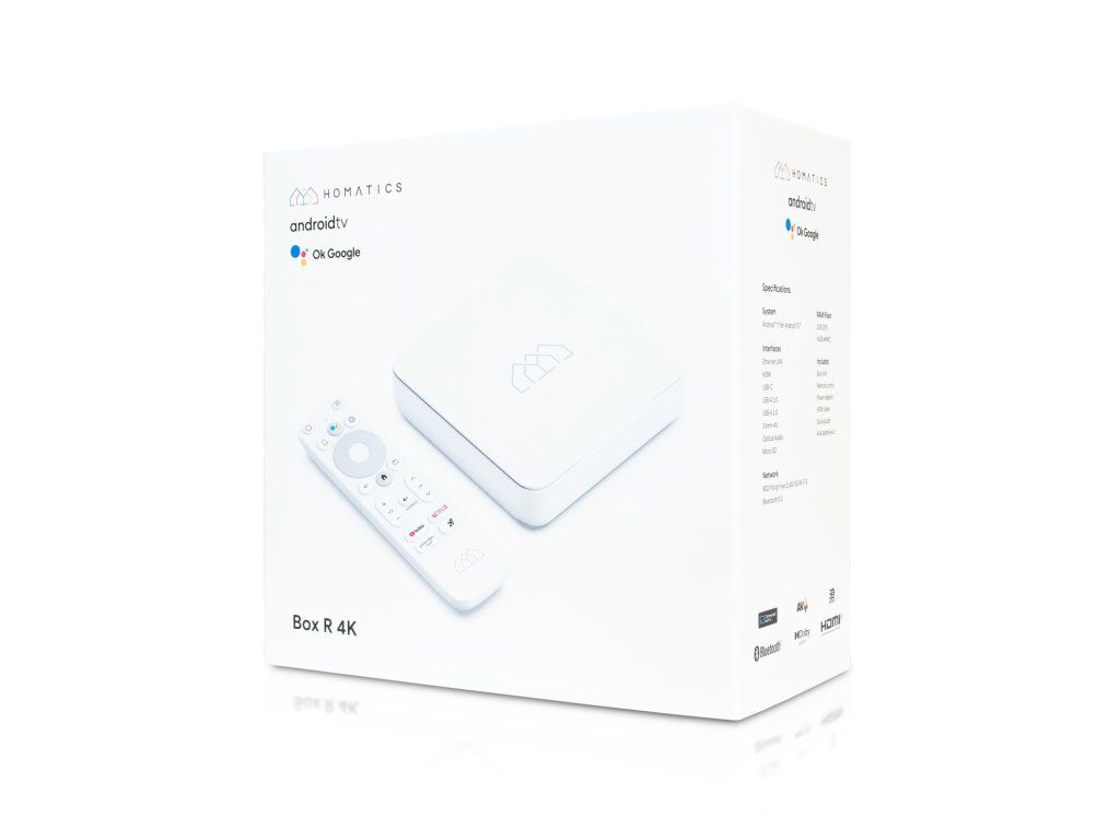 Homatics Box R 4K patří mezi nejvýkonnější 4K multimediální zařízení na trhu, který z obyčejné TV udělá výkonný smart TV. Operačním systémem je oficiální Android TV s automatickou aktualizací. O rychlé reakce se postará výkonný procesor Amlogic S905X4 (24000 DMIPS) pro vyšší rychlost a lepší zážitek z používání, kterému činí podporu až 2GB DDR RAM a 32GB eMMC Flash. Obsahuje hlasového asistenta Google, předinstalovaný YouTube, Netflix, Google Play obchod, Prime Video, zabudovaný chromecast a podporuje nejpoužívanější aplikace jako například HBO MAX, Disney+, Antik TV, SWEET.TV, Magio TV, Skylink, Kodi a další. Bluetooth dálkové ovládání slouží také jako mikrofon pro hlasového asistenta Google. Homatics Box R 4K potěší vynikající výbavou a konektivitou jako je i Ethernet konektor, USB Type C, USB 3.0, USB 2.0, S/PDIF optický digitální audio výstup, čtečku pro MicroSD karty... Klíčové vlastnosti *Nejvýkonnější 4K streamer / multimediální přehrávač *Oficiální Android TV s automatickou aktualizací *4K UHD v 60fps *Výkonný procesor Amlogic S905X4 (24000 DMIPS) *32GB eMMC Flash *2GB RAM *Podpora kodeku AV1 *slot pro MicroSD karty - pro rozšíření interní paměti *1X USB Type-C *1x USB 3.0, 1x USB 2.0 *Ethernet konektor *S/PDIF optický digitální audio výstup *Dolby Digital / Dolby Digital Plus *WiFi 5 *Bluetooth 5.0 Streamovací služby Sledujte nejnovější filmy a seriály bez reklam prostřednictvím streamovacích služeb jako jsou Netflix, HBO MAX, Disney+, Prime Video, Apple TV, VOYO a další. Prohlédněte si nejnovější filmy nebo seriály kdykoli a kdekoli bez reklam. Sledování televizních programů Přes zařízení Homatics umíte sledovat i živé vysílání televizních programů. Stačí si doinstalovat aplikaci daného poskytovatele, předplatit si danou službu a můžete sledovat. Výhody: nepotřebujete satelitní parabolu, koaxiální kabel a další příslušenství stačí připojit k internetu bez komplikované instalace kvalitní příjem i během nepříznivého počasí televizní archiv Hraní her Z Google Play obchodu si můžete stáhnout spoustu her, které si přes Homatics zařízení zahrajete přímo na vašem televizoru. Vybrat si můžete z různých žánrů jako akční, závodní, plošinovky, sportovní, bojové, hry pro více hráčů atp. Pro pohodlné hraní můžete využít např. oficiální herní ovladač Homatics Gamepad nebo Xbox bezdrátový ovladač, který se snadno a rychle připojí přes rozhraní Bluetooth. Dálkové ovládání Velice pohodlné Bluetooth dálkové ovládání v minimalistickém provedení, ale se vším co potřebujete. Rychle si jej osvojíte a navigace v menu bude pro vás bezproblémová. Na ovládání naleznete tlačítka pro rychlý přístup k aplikacím. Užitečný TIP: Také na tomto ovládání můžete namapovat tlačítko se znakem ''rakety'' na jakoukoli nainstalovanou aplikaci. Takže budete mít okamžitý přístup např. k aplikaci SledováníTV nebo VLC případně k Disney+. Volba je na vaší preferenci. Ovládání můžete používat také pro hlasové příkazy služby Google. Řekněte, co Vás zajímá nebo co chcete sledovat a Google asistent vám to zobrazí přímo na vaší TV. Chcete-li používat inteligentní domácnost, tak přes zabudovaný Google asistent můžete zapnout světlo, zvýšit teplotu termostatu, vypnout elektrické zařízení atp. Už nemusíte používat dvě dálková ovládání. Pomocí dálkového ovládání Homatics můžete měnit hlasitost přímo na vaší TV, nebo přepnout AV vstup na TV. Zabudovaný Chromecast Se zabudovanou funkcí Chromecast můžete jednoduše a bezdrátově propojit svůj smartphone s vaší TV (videa, fotografie, hudbu...). Tato funkce dokáže zrcadlit obsah téměř z jakéhokoli smartphonu, tabletu nebo notebooku. Bluetooth Kromě dálkového ovladače připojeného přes Bluetooth můžete bezdrátově připojit také herní ovladač, náhlavní soupravu Bluetooth nebo reproduktor Bluetooth. Můžete si tak vychutnat dokonalý filmový zážitek prostřednictvím audio produktů, které máte rádi. Technická specifikace *Operační systém: Android TV s automatickou aktualizací *Čipová sada: Amlogic S905X4 (Quad core ARM Cortex-A55 CPU) 24000 DMIPS *2GB DDR RAM *32GB Flash eMMC *Ethernet 100Mbps *Wi-Fi 5 2.4G/5G *Bluetooth 5.0 *HDMI 2.1 / HDCP 2.2 *Video rozlišení: 4K, 1080i/p, 720p, 576i/p, 480i/p *Podpora kodeku AV1 *Dolby Digital / Dolby Digital Plus *1x USB Type-C, 1x USB 3.0, 1x USB 2.0 *Slot pro microSD kartu *S/PDIF optický digitální audio výstup *Video File Format: mkv, wmv, mpg, mpeg, dat, avi, mov, iso, mp4, rm, jpg, bmp *Video decoding: AV1 MP-10@L5.1 až 4Kx2K@60fps VP9 Profile-2 up to 4Kx2K@60fps H.265 HEVC MP-10@L5.1 až 4Kx2K@60fps AVS2-P2 Profile up to 4Kx2K@60fps H.264 AVC HP@L5.1 až 4Kx2K@30fps H.264 MVC up to 1080P@60fps MPEG-4 ASP@L5 až 1080P@60fps (ISO-14496) WMV/VC-1 SP/MP/AP až 1080P@60fps AVS-P16(AVS+) /AVS-P2 JiZhun Profile up to 1080P@60fps MPEG-2 MP/HL až 1080P@60fps (ISO-13818) MPEG-1 MP/HL až 1080P@60fps (ISO-11172) RealVideo 8/9/10 až 1080P@60fps *Audio File Format: MP3, AAC, WMA, RM, FLAC, Ogg a programovatelná s 7.1/5.1 down-mixing (Dolby Digital/Digital Plus, DTS, WMA, WMA Pro, WMV optional) *Rozměry (Š × V × H): 110 x 108 x 21 mmDodatočné parametre