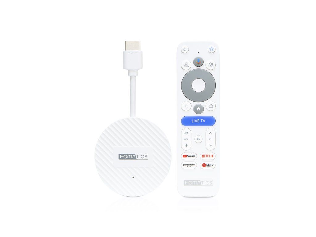 Homatics Dongle 4K V2 výkonné Android TV multimediálne centrum s Google TV a podporou 4K Homatics Dongle 4K V2 je kompaktné multimediálne centrum s Google TV, ktorý premení každý televízor na plnohodnotnú Smart TV. Stačí ho pripojiť cez HDMI a okamžite získate prístup k tisícom aplikácií, filmov a seriálov v 4K Ultra HD kvalite. Vďaka operačnému systému Google TV máte všetky obľúbené streamovacie služby na jednom mieste. Sledujte Netflix, YouTube, Disney+, HBO Max, Prime Video a ďalšie aplikácie pohodlne a bez obmedzení. Inteligentné prostredie Google TV zároveň analyzuje vaše preferencie a odporúča obsah presne podľa toho, čo radi sledujete. Homatics Dongle 4K V2 ponúka spoľahlivý výkon pre bežné používanie, jednoduché ovládanie a plynulé prehrávanie. Je ideálnou voľbou pre tých, ktorí hľadajú dostupné a praktické riešenie pre streamovanie obsahu z obľúbených aplikácií. Hlavné vlastnosti: operačný systém Google TV 14 podpora 4K Ultra HD nový výkonnejší procesor (30000 DMIPS) 32GB ukladacieho priestoru 2GB operačnej pamäte RAM Ethernet konektor (10/100Mbps) Wi-Fi 6 a Bluetooth 5.2 Dolby ATMOS kompaktné rozmery rýchle a prehľadné používateľské rozhranie vhodné pre sledovanie filmov, seriálov a streamovacích služieb Výkonný procesor vyrobený 6 nm technológiou Objavte silu moderného 6 nm štvorjadrového procesora. Bleskový výkon, plynulé 4K streamovanie a úsporná prevádzka pre dokonalý multimediálny zážitok! Vaše obľúbené aplikácie ihneď k dispozícii Multimediálne centrum s Google TV vám otvorí dvere k tisíckam aplikácií dostupných cez Google Play. Nájdete tu všetky populárne streamovacie služby ako napr.: Netflix, Disney+, Prime Video, HBO Max, Apple TV+, SkyShowtime, YouTube, Spotify, Deezer, Tidal TV aplikácie pre živé vysielanie: Skylink Live TV, Sweet.tv, VOYO, Antik TV, Magio GO a množstvo ďalších aplikácií a hier podľa vašich potrieb.Dodatočné parametre