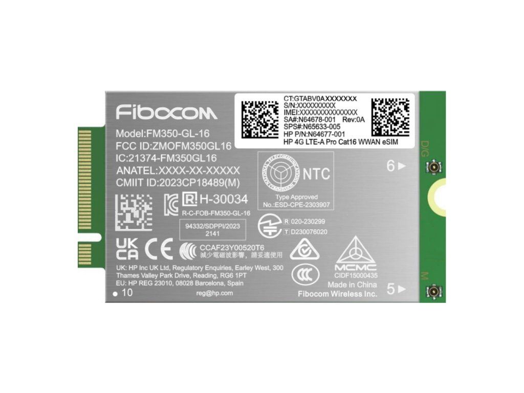 Modul pro mobilní připojení HP 4G LTE-A Pro Cat16 WWAN Kompatibilní s: HP EliteBook řady 800 G11 HP EliteBook řady 1000 G11 HP ZBook Fury G11 HP ZBook Firefly 14/16 G11Dodatočné parametre