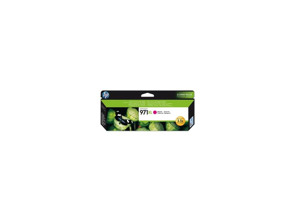 Purpurová inkoustová kazeta HP 971XL, výtěžnost 6600 stránek při 5% pokrytí. Kompatibilita s HP Officejet Pro X451/X551dw, Officejet Pro X476/X576dw.Dodatočné parametre