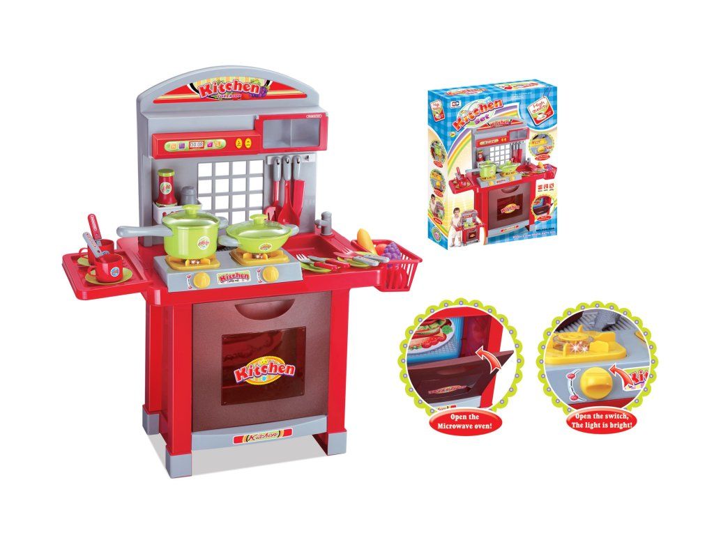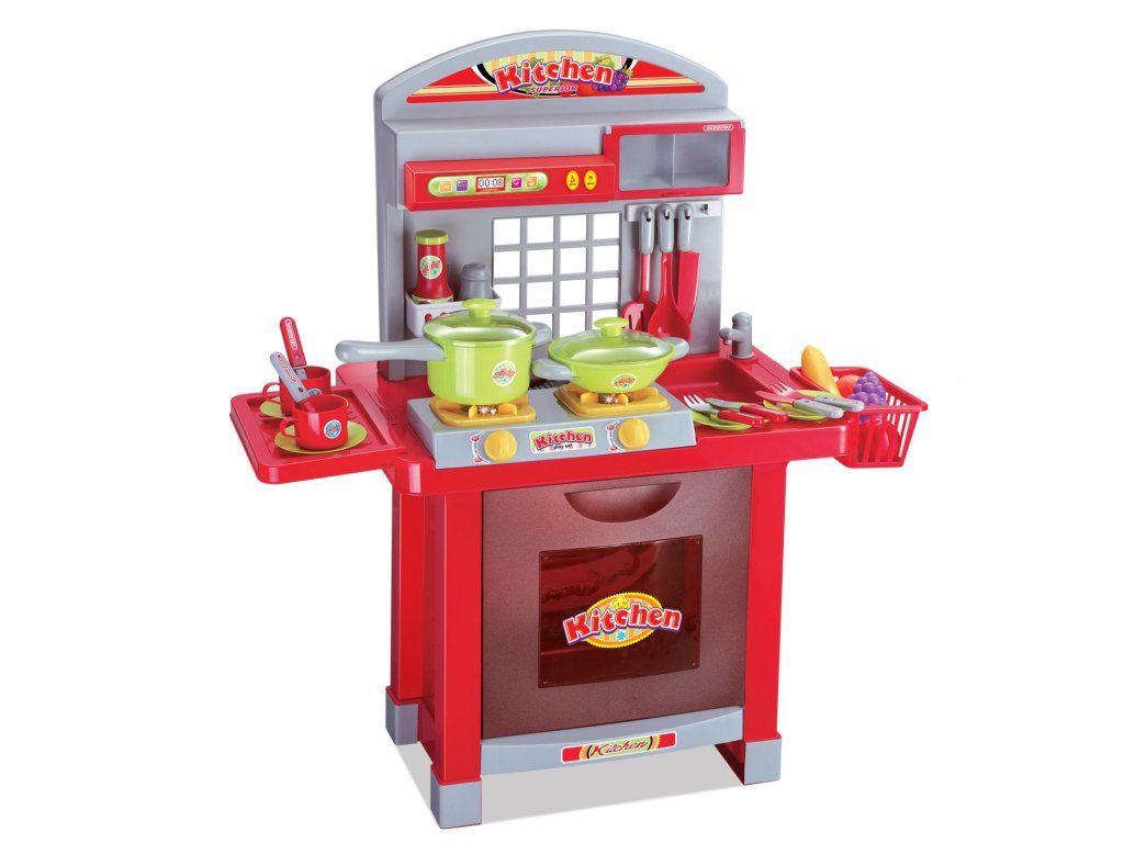 Detská kuchynka G21 Superior v červenej farbe je nevyhnutným vybavením každé malé kuchárky aj kuchára.Kuchynka má rúru, dve platničky na varenie, drez, odkladaciu plochu, vešiak na kuchynské náčinie a mnoho ďalšieho príslušenstva. V balení nájdete napríklad hrnce, taniere, hrnčeky, príbory, ovocie, zeleninu a koreničky.