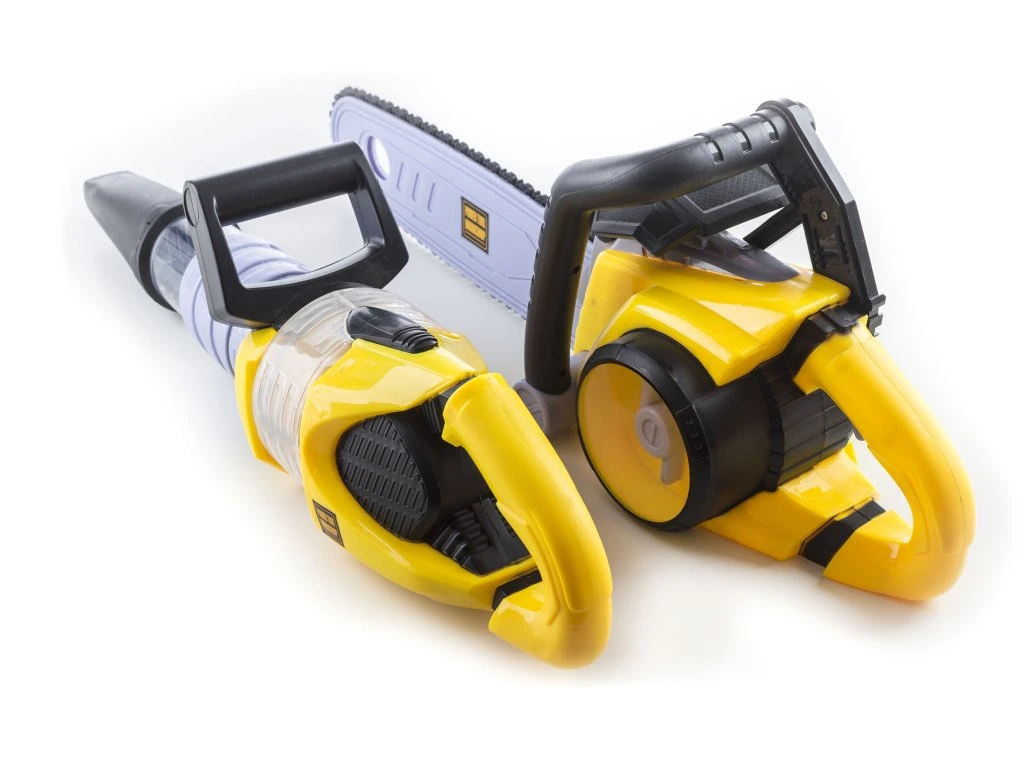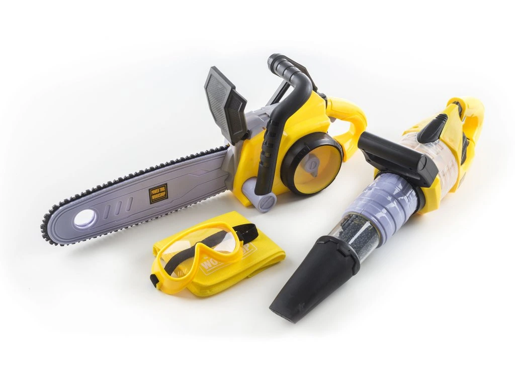 Detská motorová píla aj záhradný fukár G21 vyzerajú naozajstne. Obe hračky sa hýbu, vydávajú zvuky a svietia. Deti si ich môžu vziať so sebou na záhradu a pomáhať vám pri upratovaní lístia alebo sa hrať na pílenie dreva na zimu. V balení nájdete navyše aj plastové ochranné okuliare, bez ktorých sa nezaobíde žiadny zodpovedný pracant.