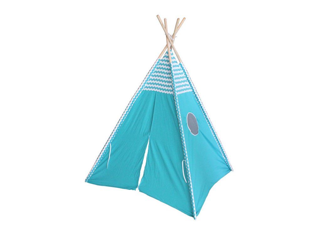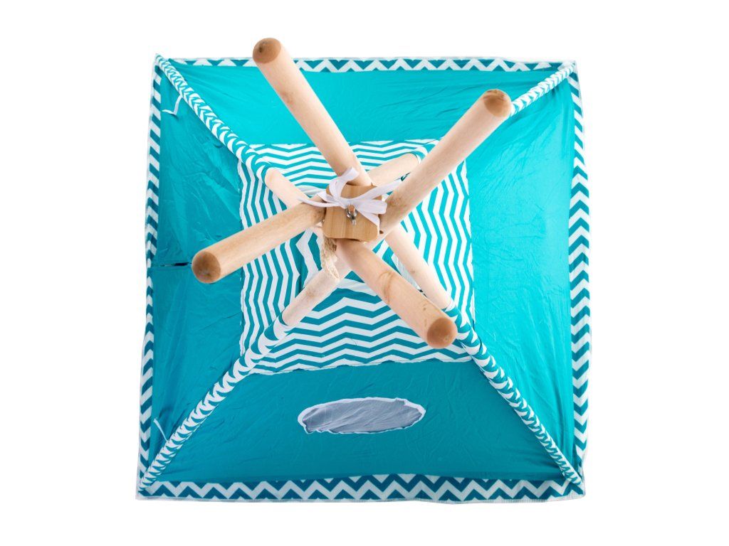 Krásne modré teepee je vyrobené z tých najkvalitnejších materiálov. Celý plášť stanu, podlážka i poťah vankúšikov sú vyrobené z prémiovej bavlny, ktorá je hypoalergénna a dokonale priedušná. Montážne tyče sú vyrobené z prírodného svetlého dreva.