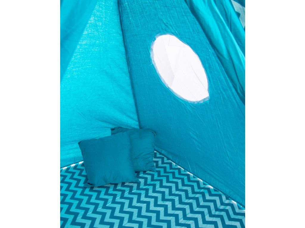 Ani na ten sme samozrejme nezabudli! Nielen že je súčasťou teepee rovno aj podlážka, čo nie je bežne zvykom, ale navyše dostanete k teepee i vybavenie v podobe dvoch vankúšikov. Na tie si môžu deti buď sadnúť, alebo na ne zložiť hlavu pri popoludňajšom odpočinku. Na jednej stene teepee je umiestnené okienko.