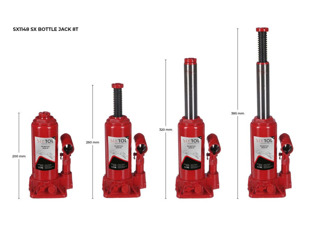 Kvalitní hydraulický zvedák typu panenka SIXTOL SX BOTTLE JACK o nosnosti 10 t.