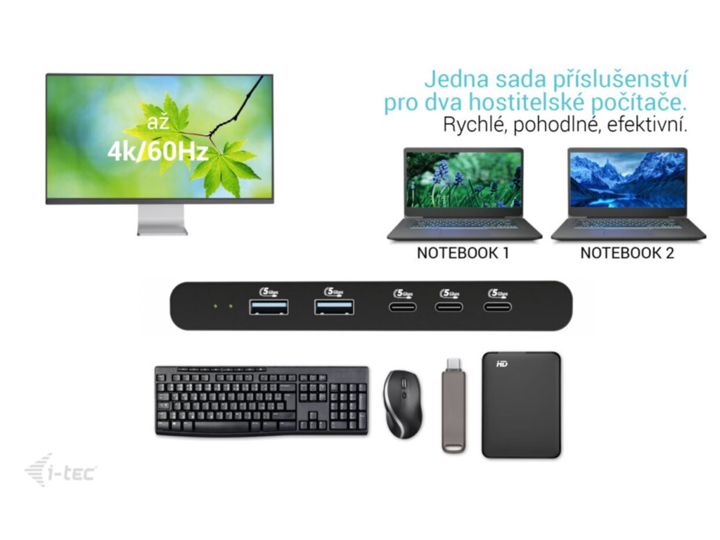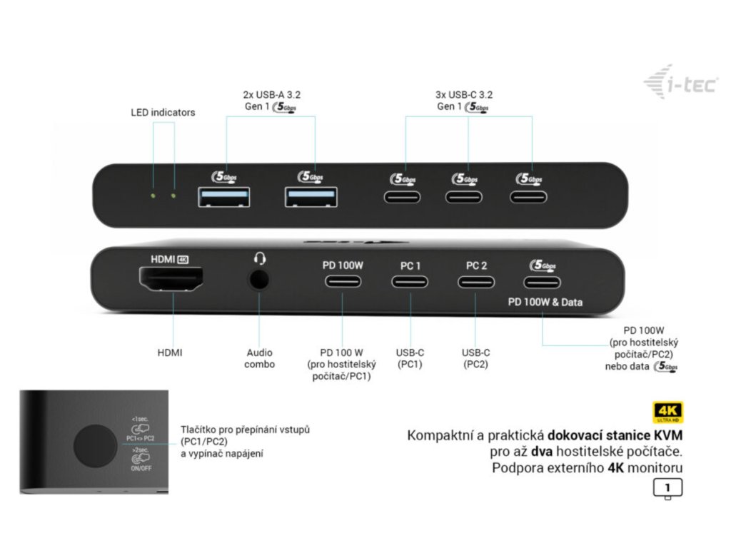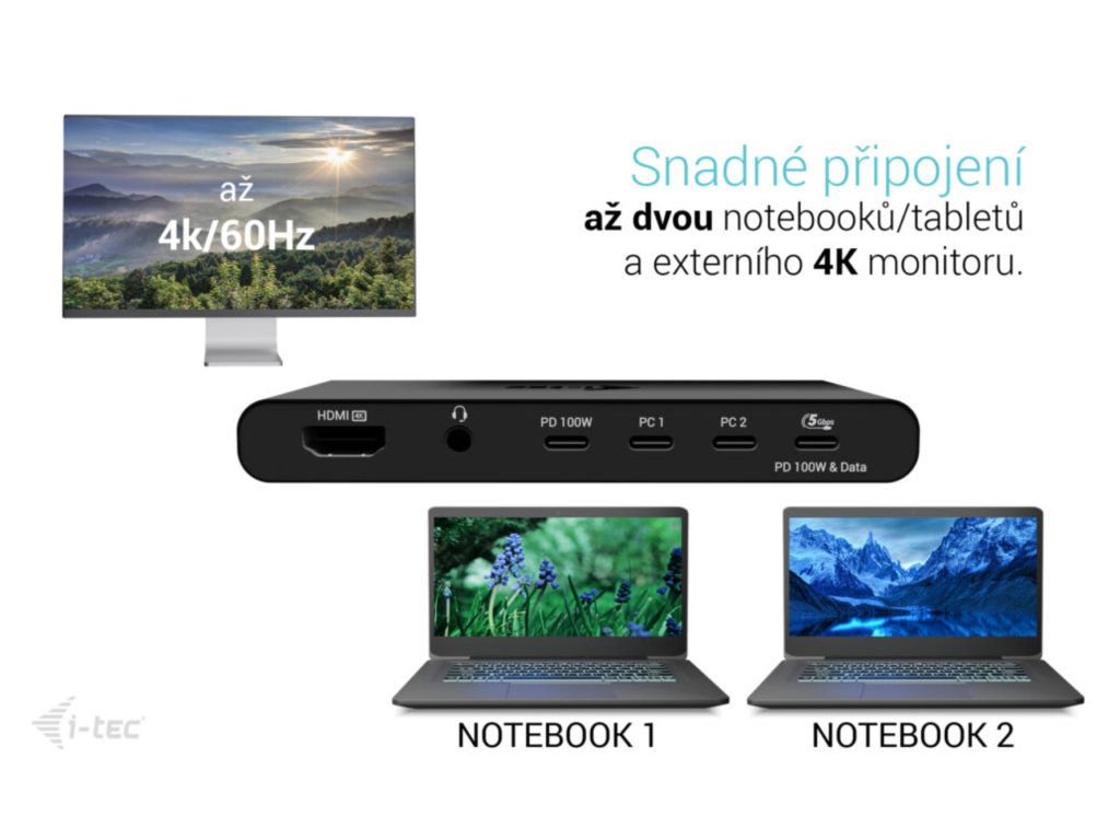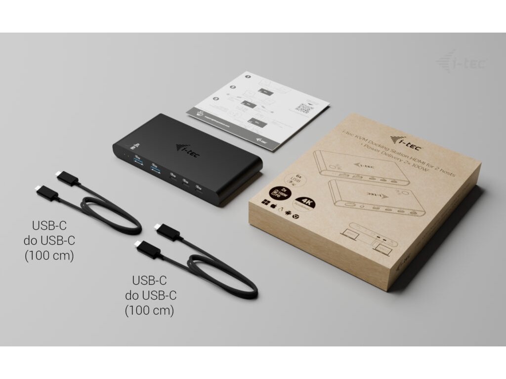 i-tec KVM Docking Station HDMI pre 2 hosty, Power Delivery 2x 100W