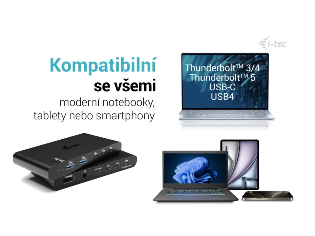 • Jedno dokovací řešení pro dva hostitele — plynulé přepínání mezi PC1 a PC2 • Dvojité Power Delivery – nabíjení obou připojených zařízení (až 2× 100 W) • Jedna sada příslušenství (klávesnice, myš, externí disky) pro oba hostitele – úsporné, efektivní a rychlé • Podpora externího 4K displeje přes HDMI (až 60 Hz) • Široká konektivita: více portů USB-C a USB-A, audio a další • Vestavěný KVM přepínač pro snadné ovládání jediné sestavy • Kompatibilní se všemi hlavními systémy: Windows, macOS, Linux, Android, ChromeOS, iPadOS Popis Kompaktní a univerzální dokovací stanice s integrovaným KVM přepínačem pro až dva hostitele. Plynule přepínejte mezi počítači a sdílejte jeden monitor, klávesnici, myš a příslušenství. Díky podpoře externího 4K/60 Hz displeje, dvojitému napájení Power Delivery (až 2× 100 W*) a široké škále portů USB je tato dokovací stanice ideálním řešením pro profesionály, kteří hledají efektivitu, flexibilitu a úsporu místa. Ať už používáte Windows, macOS, Linux, Android, ChromeOS nebo iPadOS, tato stanice vám usnadní práci s více zařízeními – doma, v kanceláři i na cestách. Klíčové vlastnosti • Jedna dokovací stanice pro dva hostitele — okamžité přepínání mezi PC1 a PC2 • Dvojité Power Delivery – nabíjení obou připojených zařízení až 2× 100 W* • Jedna sada příslušenství (klávesnice, myš, externí disky) pro oba hostitele – úsporné, efektivní a rychlé • HDMI výstup 4K/60 Hz pro křišťálově čistý obraz • Široká konektivita: USB-C a USB-A porty (až 5 Gb/s), audio jack, LED indikátory • Kompaktní a lehký design: pouze 130 × 65 × 16,5 mm, 146 g • Kompatibilní s hlavními systémy: Windows, macOS, Linux, Android, ChromeOS, iPadOS • Nízká spotřeba energie: pouze 5–10 W interně '* USB-C nabíječka(y) není/nejsou součástí balení Specifikace : • Technologie dokovací stanice: USB-C DP Alt Mode + USB-C PD + KVM přepínač • 2× USB-C porty pro připojení USB-C zařízení (PC1, PC2) • Power Delivery: až 100 W • Vnitřní spotřeba: 5–10 W • Video výstupy: 1× HDMI 2.0 • Podporované rozlišení: 1 monitor přes HDMI › až 4K/60 Hz • 1× USB-C PD port (pouze napájení) • 1× USB-C PD port + USB data Gen 1 (5 Gb/s) • 3× USB-C 3.2 Gen 1 (5 Gb/s) • 2× USB-A 3.2 Gen 1 (5 Gb/s) • 1× kombinovaný 3,5mm audio port • 1× tlačítko – přepínání vstupů mezi PC1 a PC2 • LED indikátory • Operační systémy: Windows 10/11, macOS, Android, iPadOS, ChromeOS, Linux • Rozměry produktu: 130 × 65 × 16,5 mm • Hmotnost produktu: 146 g Hardwarové požadavky: • Zařízení s volným portem USB-C, USB4 nebo Thunderbolt™ 3/4/5 Požadavky na Power Delivery: • Zařízení s volným portem USB-C, USB4 nebo Thunderbolt™ 3/4/5 s podporou Power Delivery Požadavky na video výstup: • Zařízení s volným portem USB-C nebo USB4 s podporou DisplayPort Alternate Mode, nebo s portem Thunderbolt™ 3/4/5 Operační systém: • Windows 10 / 11, macOS, Android, iPadOS, ChromeOS, Linux Obsah balení: • Produkt • 2× USB-C kabel (100 cm) • Návod k použitíDodatočné parametre