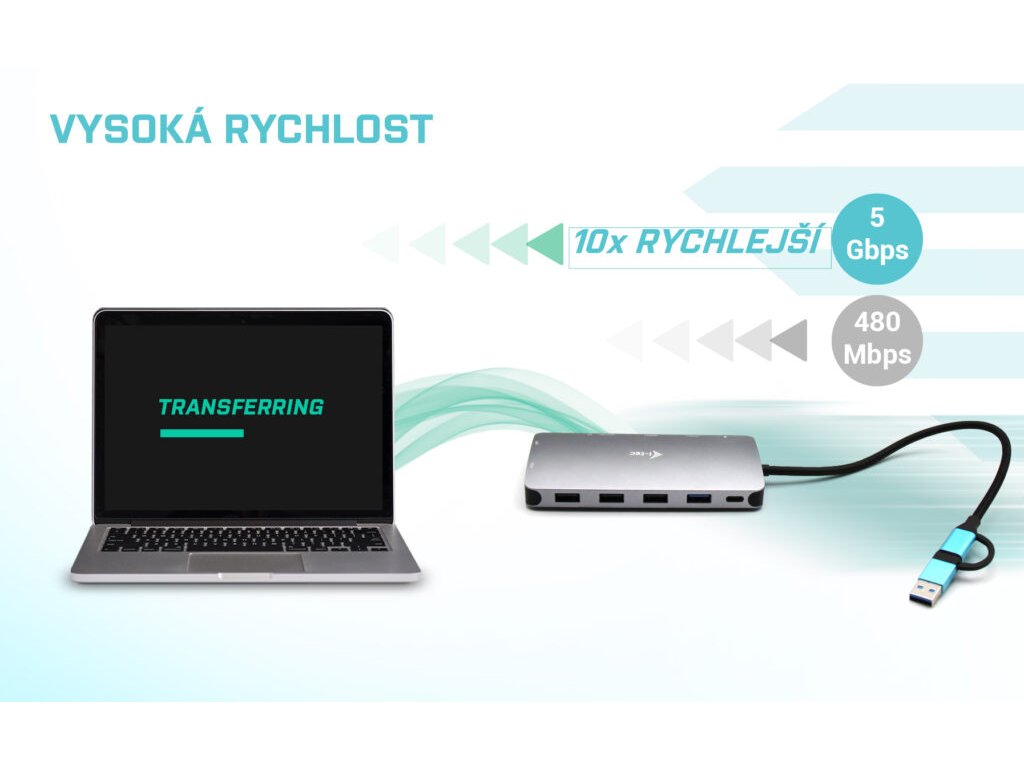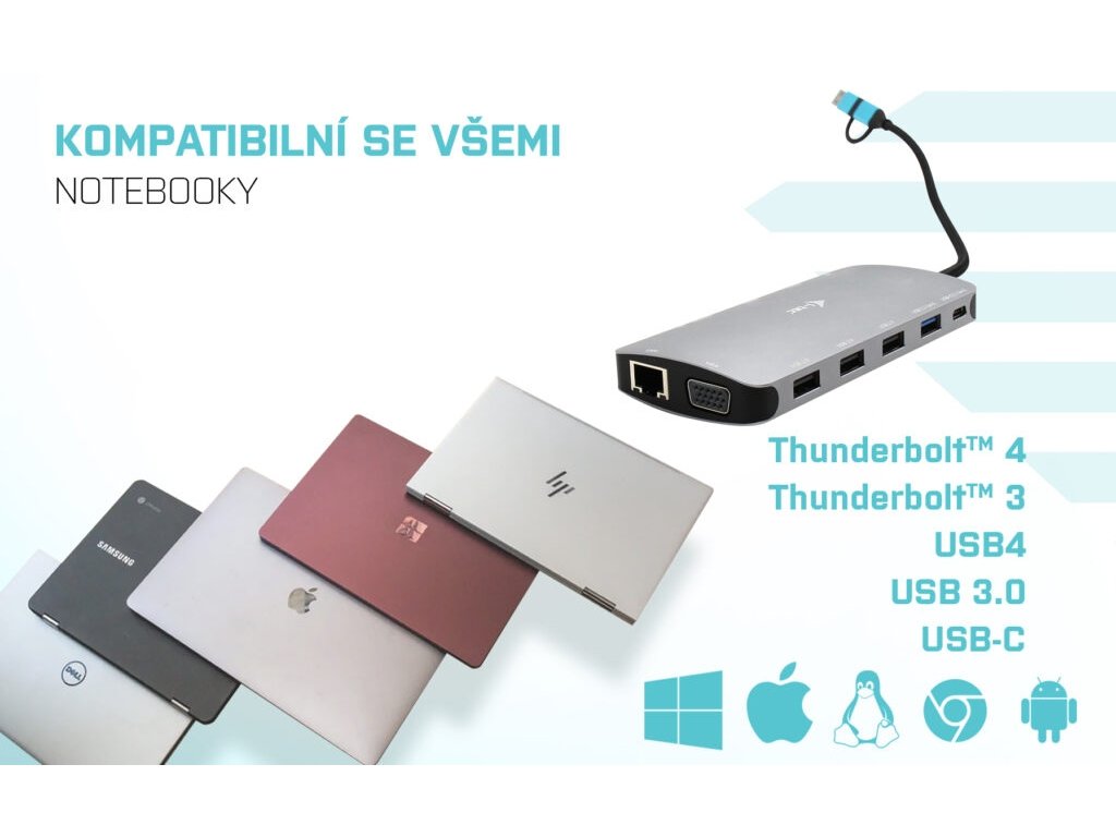• Vysoce výkonná cestovní dokovací stanice až pro tři monitory současně • Dokovací stanice je kompatibilní s téměř jakýmkoli současným notebookem (připojení přes porty USB 3.0, USB-C, USB4 nebo Thunderbolt™ 3/4). • Port HDMI 1 podporuje vysoké rozlišení až 4K • Nativní podpora portu VGA pro starší displeje nebo projektory • 5x portů USB (1x USB-C, 1x USB 3.2 a 3x USB 2.0) umožňuje snadné připojení zařízení a periferií USB • Sloty SD/microSD pro snadný přenos dat z paměťových karet • GLAN Ethernet podporuje síťové rychlosti 10/100/1000 Mb/s a poskytuje robustní a vysokorychlostní připojení k internetu. • Dokovací stanice podporuje až 100W napájení připojeného notebooku nebo tabletu Popis Výkonná, přesto však malá a přenosná dokovací stanice, která podporuje výstup až na tři externí monitory. Dok lze použít prakticky s jakýmkoliv notebookem, neboť podporuje připojení ke všem obvyklým portům: USB 3.0, USB-C, USB4 a Thunderbolt“ 3/4, a zároveň podporuje všechny běžné současné operační systémy. Připojení ke třem monitorům však bude možné pouze v případě notebooku s portem Thunderbolt“ 3/4, případně USB-C portem podporujícím přenos videa (tzv. USB-C DP Alt mode). 5 USB portů, spolehlivé a rychlé připojení do podnikové sítě díky integrovanému LAN portu a nativní podpora VGA, to vše z této dokovací stanice dělá ideálního společníka pro profesionály, kteří jsou na často na cestách a potřebují připojení i ke starším monitorům a projektorům. Samozřejmostí je podpora nabíjení vašeho notebooku či tabletu (a to až 100W). • Připojte až 3 externí monitory* • Power delivery: až 100 W • K dispozici jsou 2 porty HDMI* a jeden VGA port • 1x USB 3.2, 1x USB-C a 3x USB 2.0 vám umožní snadné připojení vašich USB zařízení a • Gigabitový Ethernet RJ-45 poskytuje spolehlivé, robustní a vysokorychlostní internetové připojení s podporou 10/100/1000 Mbps rychlostí • Sloty SD a microSD pro snadné přenášení dat z paměťových karet • Podporuje Windows 10/11, macOS, Android, Linux a ChromeOS * Port HDMI 1 bude fungovat pouze v případě připojení k notebooku s portem ThunderboltTM 3/4, USB4, případně USB-C portem podporujícím přenos videa (tzv. USB-C DP Alt mode) V případě, že je dokovací stanice připojena přes USB 3.0, nabíjení notebooků a tabletů nepodporuje Specifikace • Integrovaný 30 cm kabel USB-C obsahuje adaptér USB-C na USB 3.0 • Power Delivery: 100 W • Video Porty: - 2x HDMI* - 1x VGA • Rozlišení: - 1 monitor – 1x HDMI 1 až 4K/30Hz - 1 monitor – 1x HDMI 2 až 1080p/60Hz - 1 monitor – 1x VGA až 1080p/60Hz - 2 monitory – HDMI 1 + HDMI 2 až 4K/30Hz + 1080p/60Hz - 2 monitory – HDMI 1 + VGA až 4K/60Hz + 1080p/60Hz - 2 monitory – HDMI 2 + VGA až 2x 1080p/60Hz - 3 monitory – HDMI 1 + HDMI 2 + VGA až 4K/30Hz a 2x 1080p/60Hz • 1x USB-C 3.2 port Gen. 1 (pouze pro data) • 1x USB-C PD port (power delivery only) • 1x USB-A 3.2 port Gen. 1 • 3x USB-A 2.0 • 1x SD slot • 1x microSD slot • 1x Ethernet GLAN RJ-45 port (DL 3900) • LED indikace • OS: Windows 10/11, macOS, Linux, Android, ChromeOS s nejnovějšími aktualizacemi • Jednoduchá instalace ovladačů (Windows, macOS, Ubuntu, Android) • Rozměry produktu: 127 x 60 x 18 mm • Hmotnost produktu: 122g • Rozměry balení: 190 x 98 x 23 mm • Hmotnost balení: 140g Hardwarové požadavky: • Zařízení s volným USB-A, USB-C, USB4 nebo Thunderbolt™ 3/4 portem Požadavky pro funkci Power Delivery: • Zařízení s volným USB-C, USB4 nebo Thunderbolt™ 3 portem s podporou „Power Delivery“ Požadavky pro video výstup z portu HDMI 1: • Zařízení s volným USB4, USB-C portem s podporou “DisplayPort Alternate Mode” nebo Thunderbolt™ 3/4 portem Operační systém: • OS: Windows 10/11, macOS, Linux, Android, ChromeOS s nejnovějšími aktualizacemi * Port HDMI 1 bude fungovat pouze v případě připojení k notebooku s portem ThunderboltTM 3/4, USB4, případně USB-C portem podporujícím přenos videa (tzv. USB-C DP Alt mode) Obsah balení • Produkt • ManuálDodatočné parametre