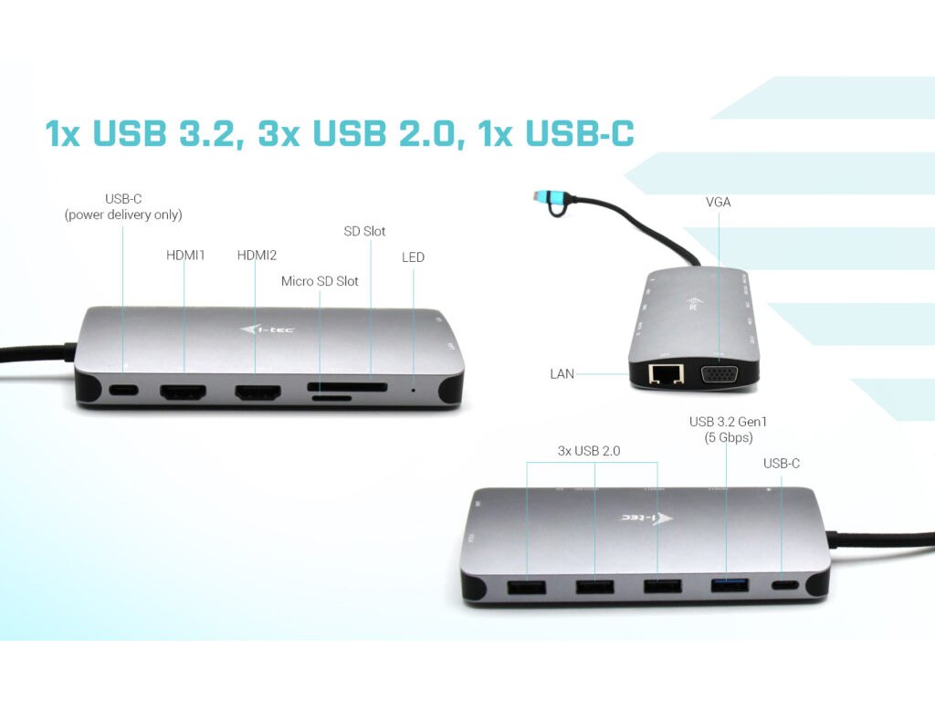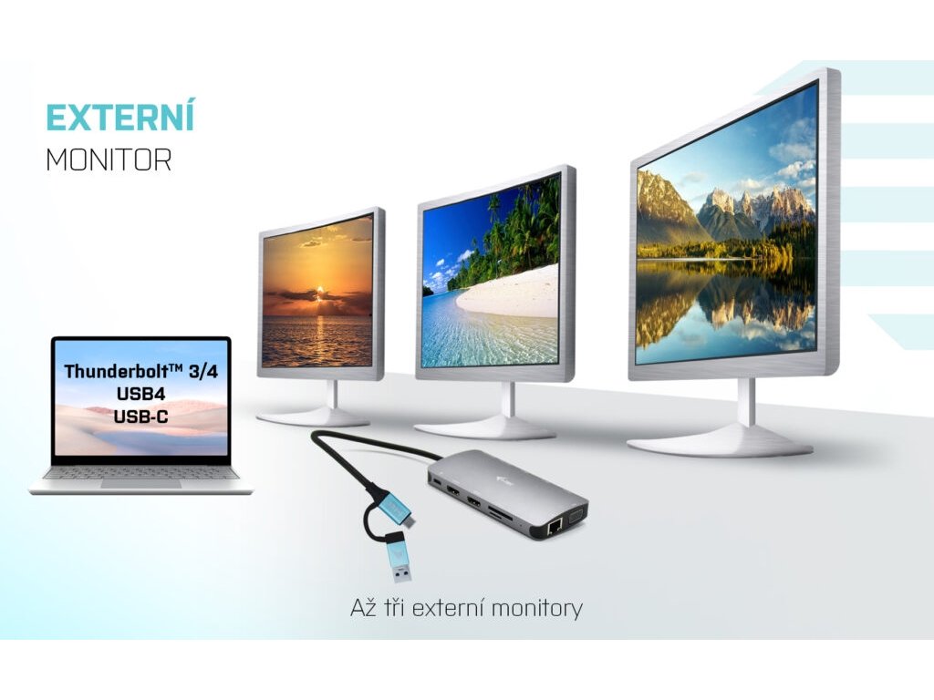 i-tec USB 3.0/USB-C/TB3 3x Display Metal Nano Dock with LAN, PD 100W
