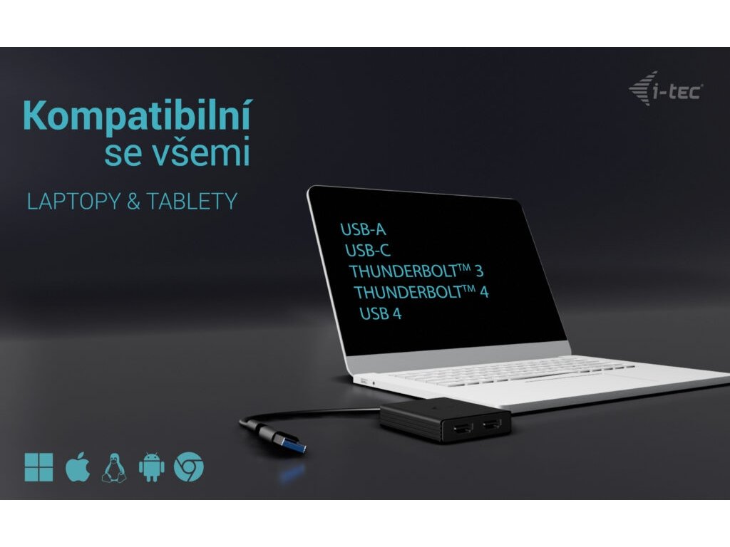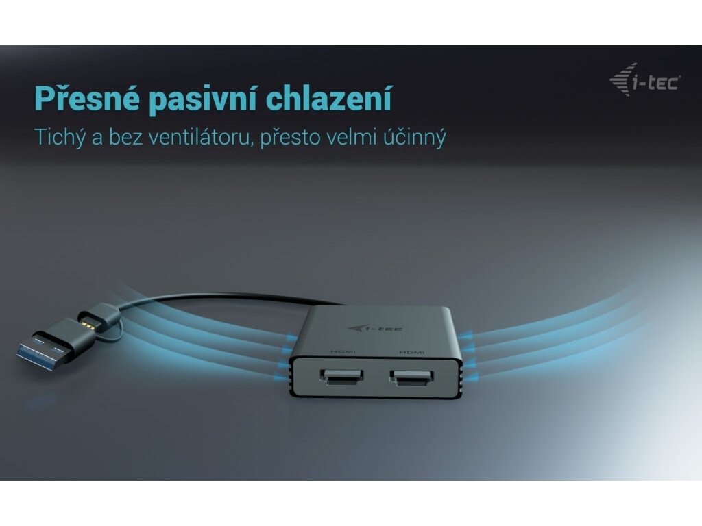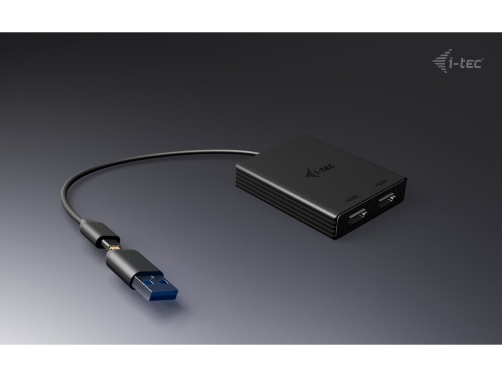 • Univerzální konektivita: kompatibilní s porty USB-C, USB-A a Thunderbolt • Výkonný a všestranný video adaptér, který dokáže připojit až dva monitory současně. • Adaptér podporuje rozlišení až 2x 4K/60 Hz bez ohledu na výkon grafické karty vašeho notebooku. • Podpora dvou HDMI portů. • Kovový povrch pro lepší odvod tepla. • Dva externí monitory jsou také podporovány na platformách Apple M1, M2 a M3. • Adaptér je kompatibilní se všemi hlavními operačními systémy. Rozšiřte svou pracovní plochu o dva externí HDMI monitory. Adaptér podporuje 2x 4K rozlišení 4096×2160@60Hz včetně audio signálu. Adaptér je vhodný pro designéry, grafiky a další uživatele, kteří pracují s více obrazovkami současně. Jeho výkon vám umožní spouštět i ty nejnáročnější aplikace na jednom nebo dvou nezávislých displejích, takže je ideální pro střih 4K/60Hz videí nebo jiné Ultra HD úlohy. S režimy „Rozbalit“ a „Zrcadlit“ můžete pracovat s aplikacemi na dvou monitorech (např. velké tabulky), pracovat na jednom monitoru a na druhém vyhledávat informace na internetu, porovnávat několik dokumentů najednou, aniž byste museli neustále přeskakovat otevírat okna, prohlížet panoramatické snímky na dvou monitorech, prohlížet grafy a aktuální data současně, prohlížet několik prezentací najednou bez nutnosti mít další počítač atd. Před použitím adaptéru je nutná krátká jednorázová instalace ovladače DisplayLink. Více informací naleznete na http://www.i-tec.pro/setup-2. Specifikace • 1x integrovaný USB-C/USB-A kabel pro připojení k hostitelskému zařízení (27 cm) • Technologie grafického adaptéru: DisplayLink Video porty: 2x HDMI Podporovaná rozlišení: 1 monitor – 1x HDMI › až 1x 4K/60Hz 2 monitory – 1x HDMI + 1x HDMI › až 2x 4K/60 Hz • OS: Windows 10/11, macOS, Android 5 nebo novější, Chrome OS R51 nebo novější, Linux Ubuntu • Rozměry produktu: 75 x 60 x 15 mm • Hmotnost produktu: 80 g • Rozměry balení: 180 x 130 x 25 mm • Hmotnost balení: 180 g Hardwarové požadavky: Zařízení s volným portem USB-A, USB-C, USB4 nebo Thunderbolt™ 3/4 Obsah balení • Produkt • QuickStartDodatočné parametre