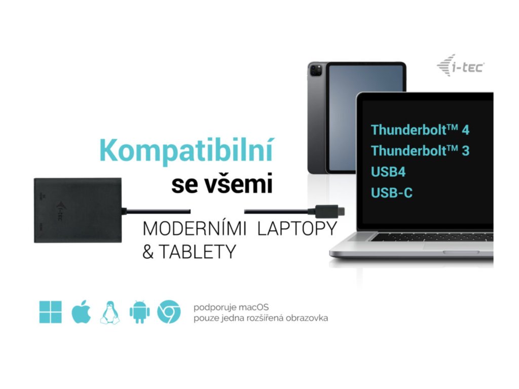 • Výkonný videoadaptér USB-C, ke kterému lze připojit až dva monitory současně • Adaptér podporuje rozlišení až 1x 8K / 30 Hz nebo 2x 4K / 60 Hz • Podpora dvou portů HDMI • Lze připojit ke všem portům USB-C: USB-C, USB4, Thunderbolt 3 a Thunderbolt 4. • Adaptér je kompatibilní se všemi hlavními operačními systémy • Pro připojení není nutná instalace (Plug & Play) • UPOZORNĚNÍ: Při použití se systémem macOS bude podporován pouze jeden externí monitor Popis • Rozšiřte svůj stolní počítač o dva externí monitory HDMI nebo připojte projektory či televizi k notebooku, tabletu nebo počítači prostřednictvím nového konektoru USB-C nebo Thunderbolt 3. Adaptér podporuje 1x 8K / 30 Hz nebo 2x 4K / 60 Hz*. • Použití je velmi jednoduché, stačí adaptér zapojit do portu USB-C, USB4 nebo Thunderbolt 3/4 na počítači, propojit jej se zobrazovacím zařízením pomocí kabelu HDMI a můžete ihned začít používat. Instalace ovladače probíhá automaticky ze systému. /*Poznámka: operační systém macOS nepodporuje technologii přenosu videa Multi Stream Transport (MST), což znamená, že v případě připojení k systému macOS bude na obou připojených monitorech promítán stejný obraz. Specifikace • 1x integrovaný kabel USB-C pro připojení k hostitelskému zařízení (30 cm) • Technologie grafického adaptéru: USB-C (MST) Video porty: • 2x HDMI Podporovaná rozlišení: Hostitelské zařízení s podporou DisplayPort 1.2: • 1 monitor – 1x HDMI 1/2 › až 4K/60Hz • 1 monitor – 1xHDMI 1/2 › až QHD/144Hz • 2 monitory – 1x HDMI 1 + 1x HDMI 2 › až 2x 4K/30Hz Hostitelské zařízení s podporou DisplayPort 1.4: • 1 monitor – 1x HDMI 1› až 8K/30Hz • 1 monitor – 1x HDMI 1/2 › až 4K/120Hz nebo 1440p/240Hz nebo 1080p/360Hz • 2 monitory – 1x HDMI 1 + 1x HDMI 2 › až 2x 4K/60Hz • Operační systém: Windows 10 / 11, macOS*, iPadOS**, Android**, Chrome OS a Linux s nejnovějšími aktualizacemi • Rozměry výrobku: 70 x 60 x 15 mm • Hmotnost výrobku: 53 g • Rozměry balení: Balení: 180 x 130 x 25 mm • Hmotnost balení: 131 g SYSTÉMOVÉ POŽADAVKY: Požadavky na hardware: • Zařízení s volným portem USB-C, USB4 nebo Thunderbolt™ 3/4 Požadavky na výstup videa: • Zařízení s volným portem USB-C nebo USB4 s podporou alternativního režimu DisplayPort nebo portem Thunderbolt™ 3/4 Operační systém: • Windows 10 / 11, macOS*, iPadOS**, Android**, Chrome OS a Linux s nejnovějšími aktualizacemi /* Systém macOS nepodporuje technologii Multi Stream Transport (MST). Připojení dvou monitorů ke stanici prostřednictvím portů DisplayPort v systému macOS způsobí, že oba monitory budou zobrazovat stejný obraz. /** Systémy iPadOS, Android nepodporují technologii přenosu obrazu na více obrazovek ani možnost rozšířené obrazovky. To znamená, že při připojení k externímu monitoru se zobrazí pouze zrcadlená obrazovka. (Neplatí pro zařízení Android s rozšířením DEX a Easy Projection. Obsah balení: • Výrobek • ManuálDodatočné parametre