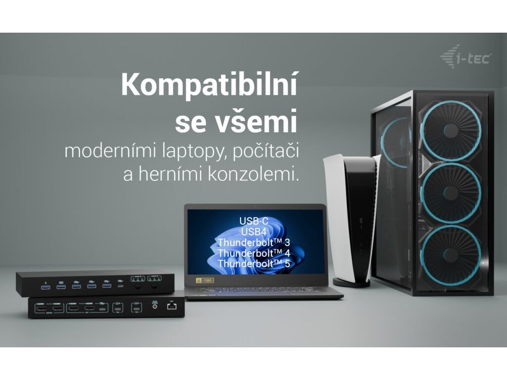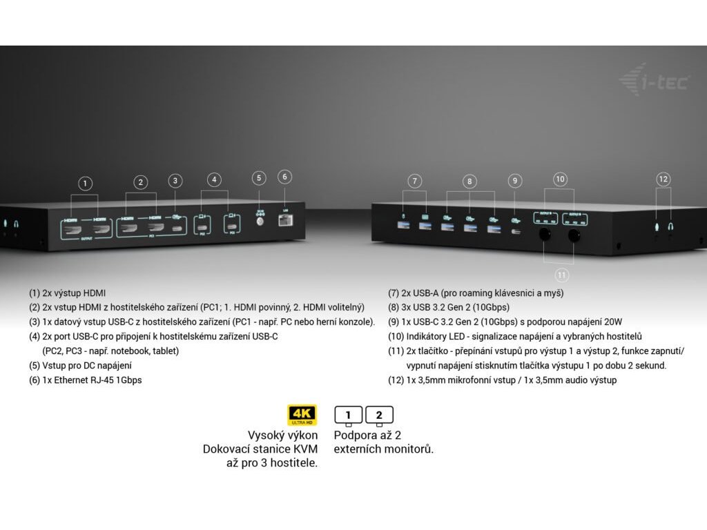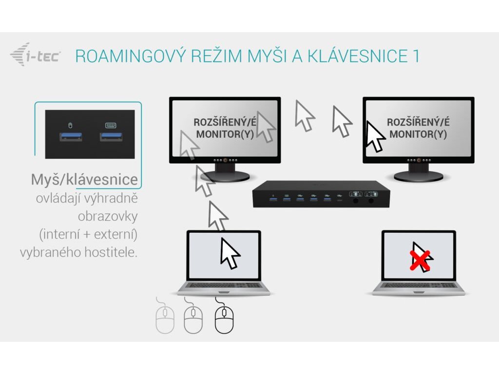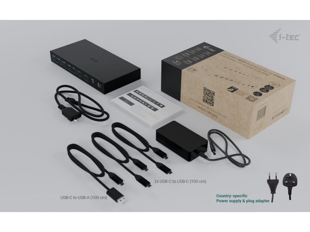 i-tec USB-C KVM Docking station pre 3 Hosts, Dual Display, 2x Power Delivery (1x 92W/2x 65W)