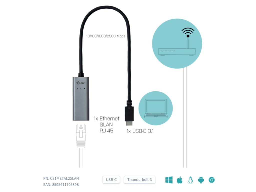 i-tec USB-C Metal 2.5Gbps Ethernet Adapter