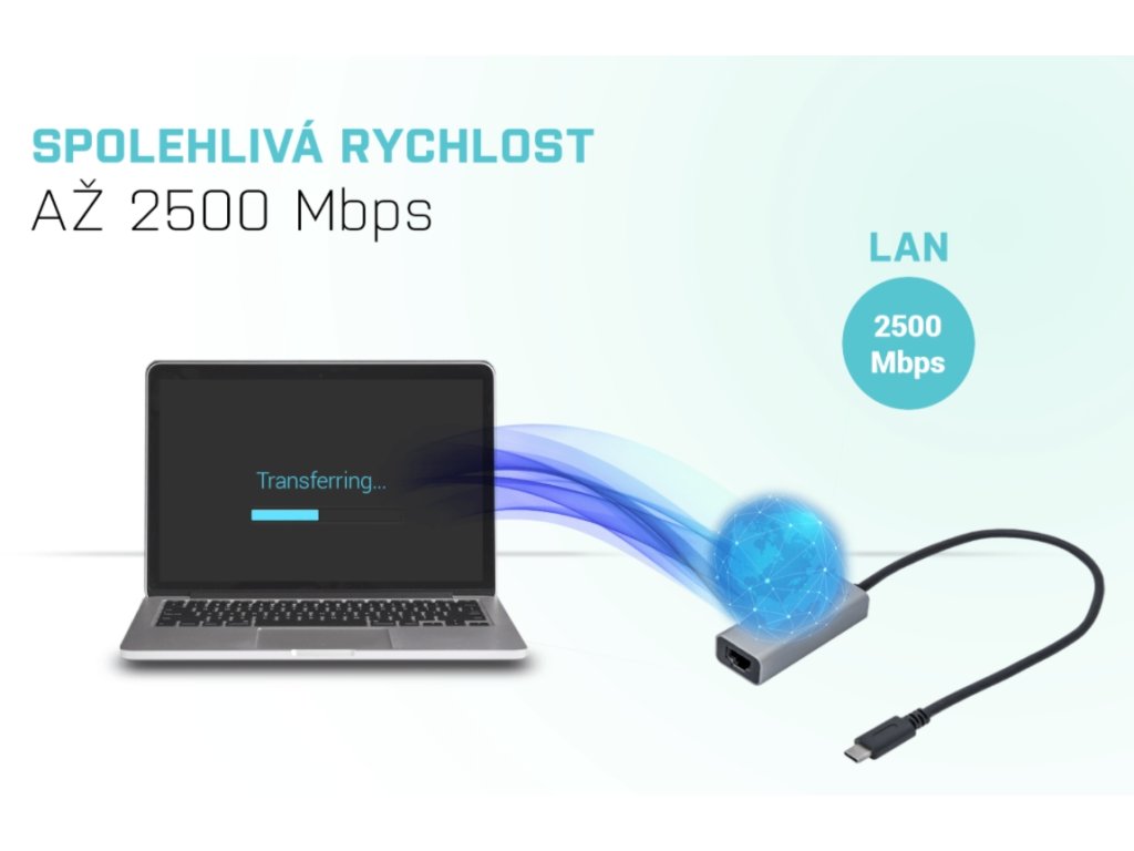 Moderní a ultrarychlý síťový adaptér, který umožní vašemu notebooku, tabletu nebo počítači s USB-C či Thunderbolt” 3/4 portem snadné, rychlé a spolehlivé připojení do podnikové sítě a internetu. Adaptér umí běžet na rychlostech 10/100/1000/2500 Mbps a vy si tak můžete v klidu vychutnat bezpečné vysokorychlostní internetové připojení bez jakéhokoli přerušení. Adaptér nevyžaduje externí napájení a podporuje širokou škálu operačních systémů od Windows a macOS až po Linux. Ethernet síťové připojení je možno používat také v systému Android. Adaptér je navržen na dlouhodobý provoz v maximálních rychlostech, a díky designu zajišťující vysokou termální ochranu je jeho plánovaná životnost 60+ měsíců. Kovové provedení navíc zajišťuje dodatečnou mechanickou ochranu proti poškození a poškrábání. Specifikace • 1x integrovaný USB-C kabel pro připojení k zařízení (30 cm) • 1x Ethernet RJ-45 port (Realtek RTL8156B) • LED indikace • OS: Windows 7 / 8 / 8.1 /10, macOS X, Linux, Android, Chrome OS • Rozměry produktu: 61 x 23 x 17 mm • Hmotnost produktu: 35 g • Rozměry balení: 130 x 100 x 20 mm • Hmotnost balení: 77 g Hardwarové požadavky: • Zařízení s volným USB-C nebo Thunderbolt™3 portem Operační systém: • Windows 7 / 8 / 8.1 /10, macOS X, Linux, Android, Chrome OS Obsah balení • Produkt • ManuálDodatočné parametre