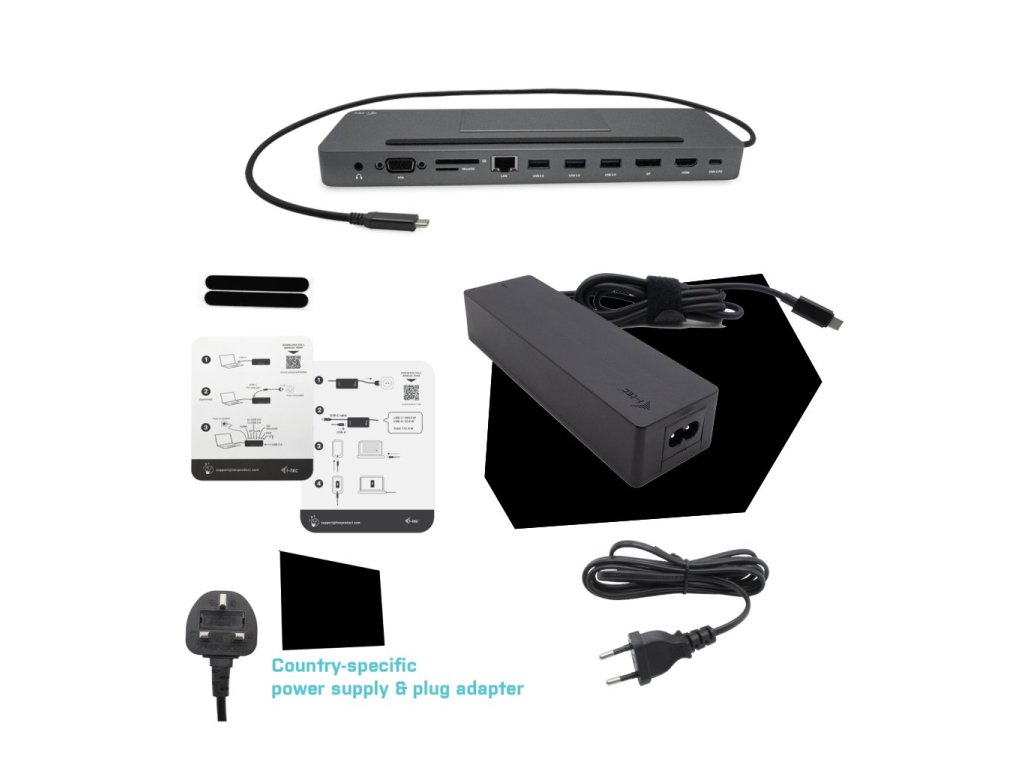 Kompatibilní s notebooky a tablety s rozhraním USB-C a Thunderbolt (musí podporovat režim DisplayPort Alt). • 1x DisplayPort, 1x HDMI a 1x VGA s podporou až tří externích monitorů nebo jednoho monitoru 4K/30Hz. macOS podporuje pouze jeden externí monitor. • Ergonomický design s hliníkovým krytem, dokovací stanice je vybavena integrovaným 60cm kabelem USB-C, takže je • • vhodná pro použití se všemi notebooky a tablety s displeji do 15'' včetně. • 4x USB porty včetně 2x USB-A 3.0 a 2x USB-A 2.0, plus sloty pro SD a mSD karty pro snadné připojení USB zařízení a periferií. • Až 85W Power Delivery pro kompatibilní notebooky a tablety s rozhraním USB-C a Thunderbolt (musí podporovat USB-C Power Delivery). • GLAN Ethernet podporuje síťové rychlosti 10/100/1000 Mb/s, což poskytuje robustní a vysokorychlostní připojení k internetu. • Kombinovaný 3,5mm audio vstup/výstup pro snadné připojení sluchátek nebo reproduktorů. Poznámka: 100W napájecí zdroj je součástí dodávky. Dokovací stanici lze používat také s napájecím zdrojem USB-C dodávaným s notebookem, takže je k dispozici jako samostatná položka, P/N C31FLATDOCKPDPRO. Tento produkt je produktovou sadou dokovací stanice a univerzálního nabíjecího adaptéru. Pořízením této sady získáte kompletní řešení, které vám umožní jak snadné připojení vašeho oblíbeného příslušenství, včetně LAN sítě a externích monitorů, tak i jednoduše a pohodlně vaše zařízení nabíjet (a to včetně vašeho notebooku či tabletu). DOKOVACÍ STANICE Připojte ke svému notebooku, tabletu, PC nebo smartphonu s novým USB-C nebo Thunderbolt 3 rozhraním své oblíbené příslušenství. Použitím této dokovací stanice získáte přístup k napájení a k výstupu až pro tři externí monitory (platí pro systémy s Windows). Dokovací stanici připojíte jediným kabelem (60 cm) do USB-C nebo Thunderbolt 3 portu počítače a můžete ji začít okamžitě využívat. Instalace ovladačů je automatická ze systému. Dokovací stanici jsme navrhnuli tak, aby se dala použít i jako ergonomický podstavec po váš notebook či tablet. Poznámka: operační systém macOS nepodporuje technologii Multi Stream Transport (2 a více monitorů v rozšířeném režimu). Tuto funkci v macOS nepodporuje žádná dokovací stanice využívající USB-C DisplayPort Alt Mode. UNIVERZÁLNÍ NABÍJECÍ ADAPTÉR Tento univerzální USB-C napájecí adaptér s výkonem až 112 W je výbornou volbou pro napájení jakéhokoli notebooku či jiného zařízení s USB-C konektorem, které podporuje USB-C Power Delivery s maximálním požadovaným příkonem 100 W. Napětí se nastavuje automaticky podle USB Power Delivery specifikace v jednotlivých profilech v těchto krocích: 5V / 9V / 12V / 15V / 19V / 20V s max. odběrem 5A. Napájecí adaptér je lehký a snadno přenositelný, má inteligentní ochranu proti proudovému přetížení, přepětí, zkratu a přehřátí. Specifikace DOKOVACÍ STANICE • 1x integrovaný USB-C kabel pro připojení k zařízení (60 cm) • Technologie dokovací stanice: USB-C (MST) • Power Delivery: 85W • Video porty:,1x Display Port, 1x HDMI, 1x VGA Rozlišení: Hostitelské zařízení s podporou DisplayPort 1.2: • 1 monitor – 1x HDMI nebo DP › až 4K/30Hz • 1 monitor – 1x HDMI nebo DP› až 1080p/120Hz • 1 monitor – 1x VGA › až 1080p/60Hz • 2 monitory – 1x DP + 1x HDMI › až 2x 1080p/60Hz* • 2 monitory – 1x DP + 1x VGA › až 2x 1080p/60Hz* • 2 monitory – 1x VGA + 1x HDMI › až 2x 1080p/60Hz* • 3 monitory – 1x HDMI + 1x DP + 1x VGA › až 1x 1080p/60Hz + až 2x 720p/60Hz* • 1x USB-C port PD (pouze power delivery) • 2x USB 3.0 port • 2x USB 2.0 port • 1x Ethernet GLAN RJ-45 port • 1x SD slot • 1x microSD slot • 1x 3,5mm Audio kombo port • Klonování MAC adresy: ano (za použití software i-tec Docker Pro) • WOL: S1, S2, S3 • OS: Windows 10/11, macOS*, iPadOS**, Android**, Chrome OS a Linux s nejnovějšími aktualizacemi • Rozměry produktu: 269 x 84 x 23 mm • Hmotnost produktu: 324 g • Rozměry balení: 316 x 130 x 30 mm 1/ Operační systém macOS nepodporuje technologii více-obrazového video přenosu Multi Stream Transport (MST), což znamená, že v případě připojení k macOS bude na všech připojených monitorech promítnut stejný obraz. 2/ Aby fungovaly tři externí monitory, víko notebooku musí být zavřené. Hardwarové požadavky: • Zařízení s volným portem USB-C, USB4 nebo Thunderbolt™ 3/4 Požadavky pro funkci Power Delivery: • Zařízení s volným portem USB-C, USB4 nebo Thunderbolt™ 3/4 s podporou Power Delivery Požadavky pro video výstup: • Zařízení s volným portem USB-C nebo USB4 s podporou alternativního režimu DisplayPort nebo portem Thunderbolt™ 3/4 Operační systém: • Windows 10 / 11, macOS*, iPadOS**, Android**, Chrome OS a Linux s nejnovějšími aktualizacemi * Systém macOS nepodporuje technologii Multi Stream Transport (MST). Připojení dvou monitorů ke stanici v systému macOS způsobí, že oba monitory budou zobrazovat stejný obraz. ** Systémy iPadOS, Android nepodporují technologii přenosu obrazu na více obrazovek ani možnost rozšířené obrazovky. To znamená, že při připojení k externímu monitoru se zobrazí pouze zrcadlená obrazovka. (Neplatí pro zařízení Android s rozšířením DEX a Easy Projection). UNIVERZÁLNÍ NABÍJECÍ ADAPTÉR • Univerzální 100W USB-C napájecí adaptér pro napájení notebooků, tabletů, smartphonů a jiných zařízení s USB-C nabíjecím portem • Vstupní napětí AC 100-240V, 50-60Hz, max. 2.3A • Výstupní výkon (max.): 100 W • Účinnost: více než 86% • Výstupní napětí USB-C: DC 5V / 9V / 12V / 15V / 19V / 20V • Výstupní proud USB-C: max. 5A • Výstupní výkon USB-C (max.): 100W • Ochrana proti: proudové