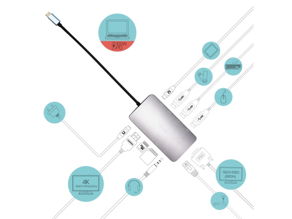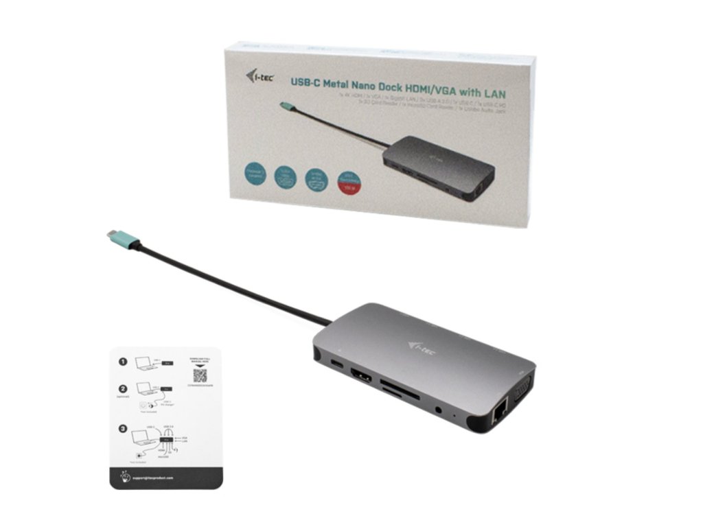 i-tec USB-C Metal Nano Dock HDMI/VGA s LAN, Power Delivery 100 W + zdroj 100W