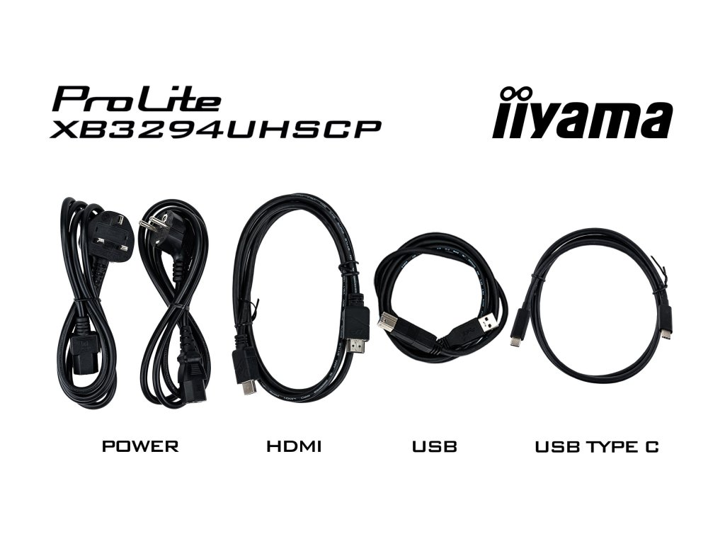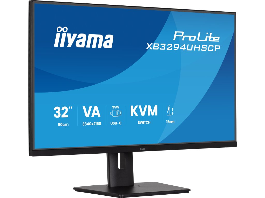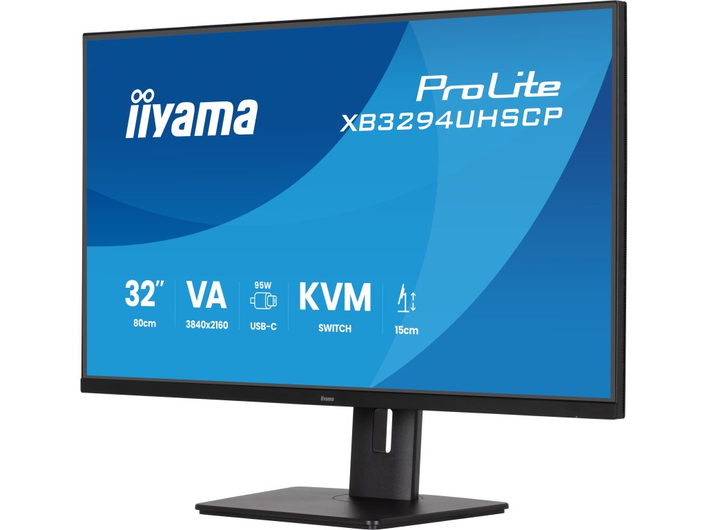 ProLite XB3294UHSCP-B1 32” 4K VA panel with USB-C connection (95W), KVM Switch and PiP/PbP *KVM switch , *Redukce modrého světla  , *Flicker Free LED  , *Adaptive Sync support  , *Extra i-Style colour *HDR10 Typ obrazovky: ,VA Úhlopříčka [palce]: ,31.5'', 80 cm Rozlišení: ,3840 x 2160 @60Hz (8.3 megapixel 4K UHD) Rozteč bodu [mm]: ,0.182 Obnovovací frekvence [Hz]: ,60 Poměr stran: ,16:9 Jas [cd/m2]: ,400 Kontrast: ,3000:1 Odezva [ms]: ,2 ms Pozorovací úhly (Horizontál/Vertikál): ,178°/178°, Počet barev: ,1.07B (8bit+FRC) (sRGB: 99%, NTSC: 93%) Reproduktory: ,2 x 5W Konektory: , *Vstupní porty: HDMI x2 (v.2.1), DisplayPort x1 (v.1.2), USB-C x1 (PD 95W) *USB HUB: x4 (2x Type-A v.3.2 Gen 1 (5Gbps, 4.5W) 2x Type-C (5Gbps, 7.5W)) *HDCP *Konektor pro sluchátka , , Napájení: ,interní, ,AC 100 - 240V, 50/60Hz Spotřeba [W]: ,55 W , Stand By režim [W]: ,0.5 W , Třída energetické náročnosti: ,G Montáž na zeď: ,100 x 100 mm Naklápění monitoru: , *Úpravy polohy: výška, swivel, náklon, Pivot (rotace na obě strany) *Výškově nastavitelné: 150 mm *Otočný (Pivot): ,90° *Úhel otočení: 90°, 45° nalevo, 45° napravo *Úhel náklonu: ,23° nahoru, 5° dolů Barva: ,matná, černá Rozměry (se stojanem, ŠxVxH mm): ,713.9 x 448.5 (598.5) x 245.5 mm Hmotnost [kg]: ,8.5 kg Obsah balení: , *Kabely: napájecí (1.85 m), USB (1.5 m), HDMI, DP (1.85 m), USB-C (1.0 m) *Ostatní: uživatelský manuál, instrukce bezpečnosti Záruka: ,60 měs. Stránky výrobce: ,https://iiyama.com/cz_cs/produkty/prolite-xb3294uhscp-b1/Dodatočné parametre