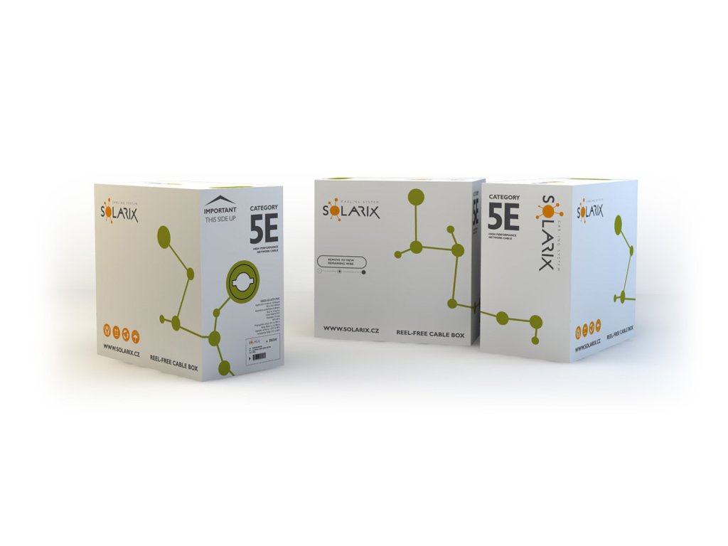 Instalační kabel Solarix s označením SXKD-5E-UTP-PVC je spolehlivý nestíněný kabel kategorie 5E, který je určený pro provoz ethernetových protokolů, včetně 2.5GBASE-T a 5GBASE-T*. Konstrukce kabelu je U/UTP, typ pláště PVC s třídou reakce na oheň Eca. Vodiče kabelu jsou vyrobeny z kvalitního měděného drátu s čistotou mědi 99,97%. Kabel bez problémů splňuje požadavky z mezinárodních standardů ISO/IEC 11801, EN 50173 a ANSI/TIA 568.2-D. V případě CPR (nařízení EU č. 305/2011) je kabel testován u nezávislé laboratoře FORCE TECHNOLOGY v systému posuzování vlastností AVCP 3. Stejně jako ostatní kabely Solarix, je i kabel SXKD-5E-UTP-PVC značen metráží po 1 m v rozsahu od 0 do 500 m. Kabel je dodáván ve vysoce odolném třívrstvém leštěném kartónovém boxu (vždy barevně odlišeném podle typu kabelu), na kterém jsou uvedeny všechny nezbytné produktové informace, včetně čárových kódů, výrobní šarže, popisu a nejdůležitějších technických parametrů.Klíčové vlastnosti kabelu Solarix kategorie 5E