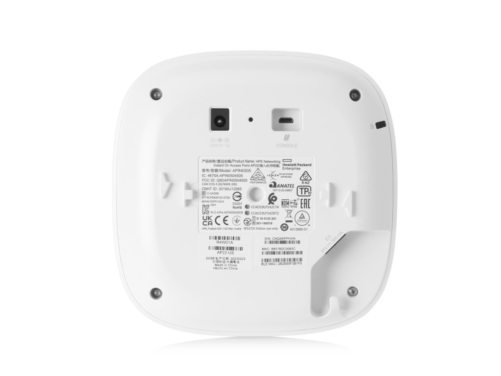 Aruba Instant On AP22 + 12V PSU EU Aruba Instant On AP22 (RW) Access Point. Přístupový bod Aruba Instant On AP22 poskytuje vysoce výkonné souběžné funkce 2,4 GHz a 5 GHz Wi-Fi 6 (802.11ax) s rádii MIMO (2 x 2 v 2,4 GHz, 2 x 2 v 5 GHz) a zároveň podporuje starší 802.11a/b/g/n/ac bezdrátové služby. Klíčové vlastnosti *Rychlý 802.11ax *Wi-Fi CERTIFIED 6 (Wi-Fi 6) *Výkon MU-MIMO *Podpora technologie Smart Mesh Wi-Fi *Integrovaný směrovač / brána Wi-Fi *Integrovaný Bluetooth *Snadno použitelná webová a mobilní aplikace pro nastavení a správu *Zabezpečené Wi-Fi pro hosty s jednoduchým nastavením Technické parametry *Duální rádio pro současný dvoupásmový provoz *5 GHz 802.11ax 2x2 MIMO pro bezdrátový datový tok až 1,2 Gbps, s podporou Multi User MIMO (Wi-Fi 6) *2,4 GHz 802.11ax 2x2 MIMO pro rychlost bezdrátového přenosu dat až 574 Mb/s (Wi-Fi 6) *Gigabitový ethernetový port Uplink s podporou PoE-in (802.3af) *DC napájecí konektor (12V) *Stavové indikátory rádia Bluetooth s nízkou spotřebou energie (BLE) *Tlačítko reset / LED *Bezpečnostní slot Kensington *Napájení přes Ethernet (POE): 802.3af (třída 3) *Maximální spotřeba energie (v nejhorším případě): 10,1 W (PoE), 8,8 W (DC) *DC napájení (12V) *Rozměry: 160 mm x 160 mm x 37 mm, kromě montážního příslušenství *Hmotnost: 500 gDodatočné parametre