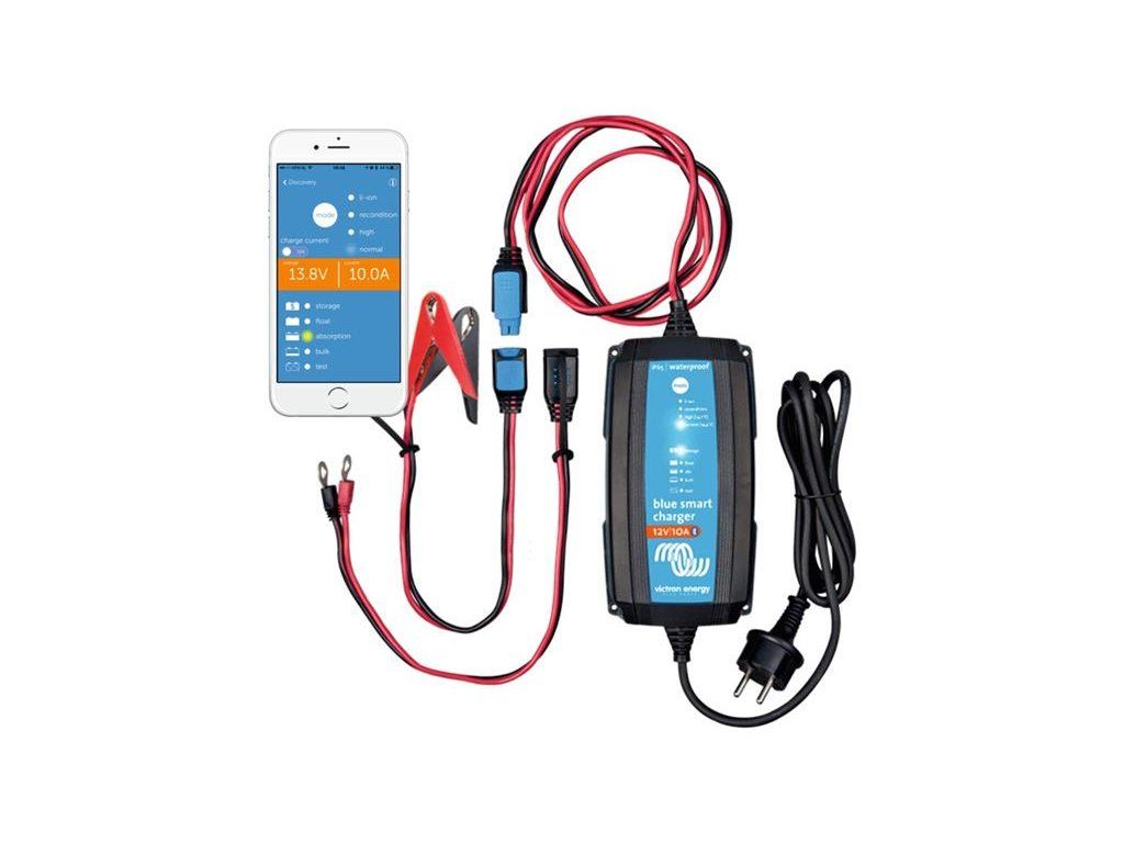 Nabíjačku Blue Smart IP65 môžete nastaviť, prezerať a konfigurovať prostredníctvom smartfónu. Môžete zobraziť stav nabíjačky a batérie. Dokonca môžete ovládať funkcie nabíjačky pomocou aplikácie VictronConnect. Na obrazovke sa zobrazuje predvolená hodnota napätia a prúdu. Aplikáciu pre systémy iOS a Android si môžete stiahnuť zde. Aplikáciu VictronConnect si môžete bezplatne stiahnuť aj na Google Play alebo v App Store.